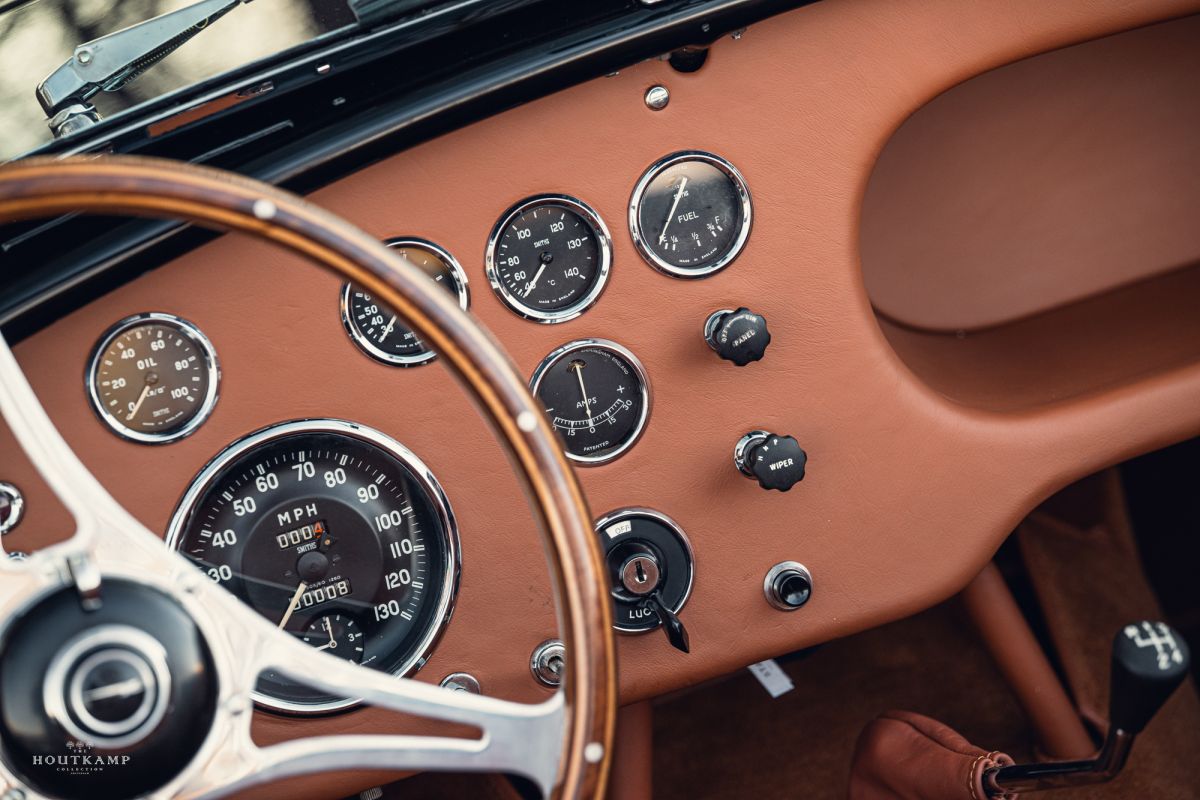 In summary, the interior of this Ac Ace is a harmonious blend of classic British craftsmanship and Ferrari-inspired luxury. The brown biscuit leather, the restored dashboard, and the elegant finishes all come together to create an environment that is both timeless and incredibly refined.
