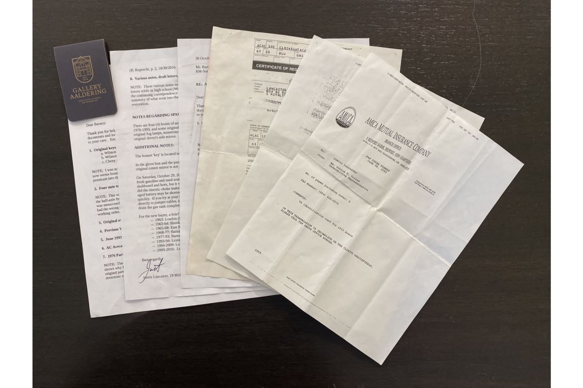 The Aceca has a 1991 cc straight-six, triple carburettor engine delivering 90 Hp which is coupled to a manual 4-speed, overdrive transmission. We believe that in all likelihood the engine is still one and the same as the one fitted when it left the factory in 1963. This car is furthermore in very authentic condition with the original 56 spoke wire wheels, seats, sun-visors, wooden dashboard and wheel nuts. Finally the extensive file, old number plates and a considerable description of this special AC is certainly worth mentioning. THIS VEHICLE IS IN OUR STORAGE, VIEWING BY APPOINTMENT ONLY.