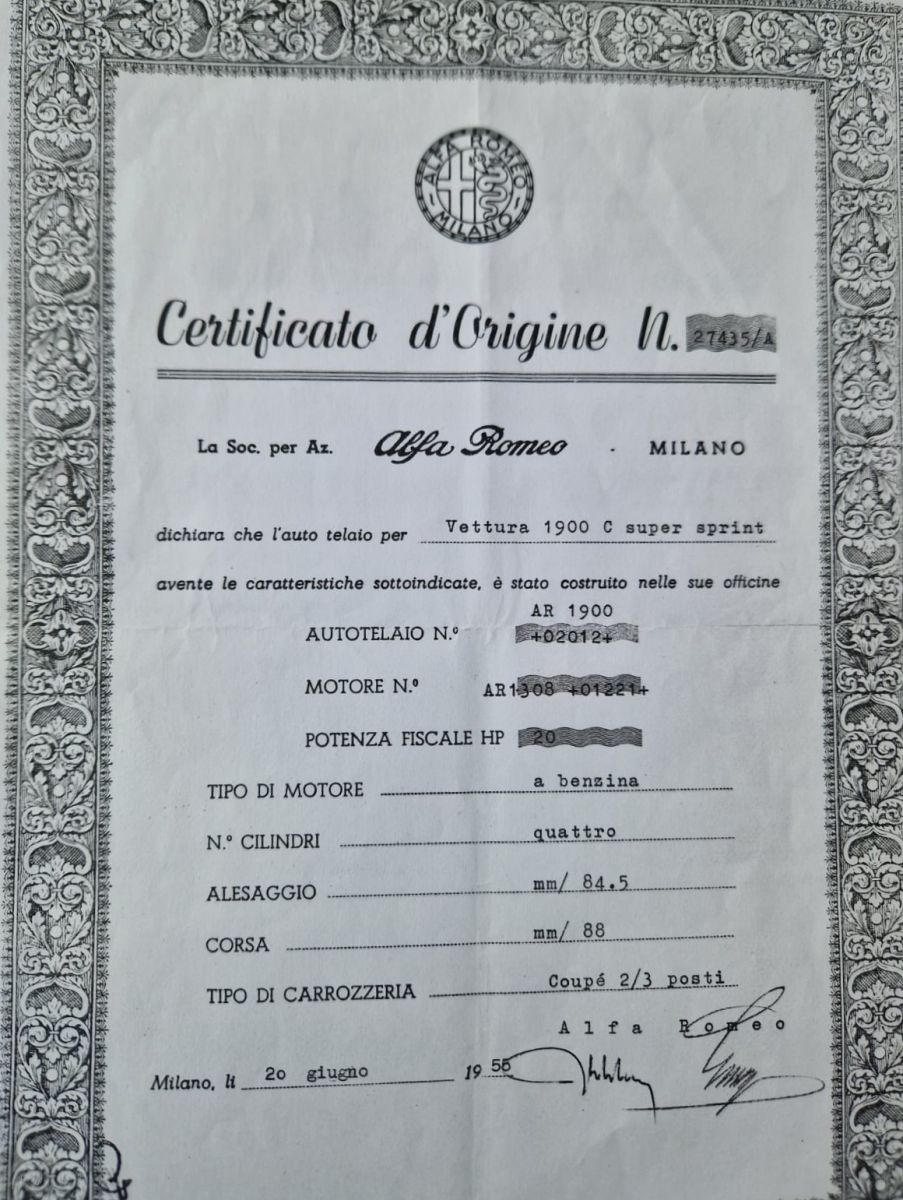 Alfa Romeo 1900 Super sprint matching numbers, restauro risalente ad una quindicina di fa ottimamente conservata ha partecipato a numerose manifestazioni come la Millemiglia Vernasca Silver Flag Tazio Nuvolari etc passaporto FIVA ( scaduto) e omologazione ASI, targa italiana, visibile su appuntamento chiamando il +39 3483527366