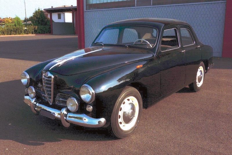 Alla fine della Seconda Guerra Mondiale, l'Alfa Romeo si trovò nella necessità di sostituire il grande modello 6C. La nuova vettura era più leggera e più piccola, progettata sotto la supervisione di Orazio Satta Puliga. Era l'“Alfona” per lo più, la “Pantera” per eccellenza, “l'auto familiare che vince le corse” nella pubblicità. L'Alfa Romeo 1900, costruita tra il 1950 e il 1959, fu la prima Alfa Romeo interamente costruita su catena di montaggio, monoscocca e guida a sinistra. Il motore bialbero era un 4 cilindri (per una tassazione inferiore), da 1,9 litri che erogava 90 CV per una velocità massima di oltre 170 km/h. Giuseppe Busso ha fornito al telaio, Consalvo Sanesi al collaudo, la forma è stata disegnata da Orazio Satta Puliga e Antonio Alessio. Gaetano Ponzoni, della Carrozzeria Touring, ha suggerito gli ultimi ritocchi. All'interno c'era spazio per due divani a tre posti. La berlina a quattro porte del 1900 fu l'unico modello disponibile, fino all'introduzione della coupé nel 1951 e della berlina TI nel 1952. Furono prodotte un totale di 17.243 vetture. L’Alfa Romeo 1900 berlina 1952, telaio AR02163 ha gli interni restaurati così come le cromature. Carrozzeria in buone condizioni, alcuni interventi sono da prevedere per renderla perfetta. Meccanica revisionata in molte parti ed in perfetto ordine di funzionamento. Storia ricostruibile interamente tramite estratti cronologici. Primo proprietario fu una società di Genova che ne fece, presumibilmente, uso di rappresentanza e per la dirigenza. In seguito a vari passaggi di proprietà l’auto è giunta a San Marino perdendo, purtroppo, le targhe italiane originali. È stata poi reimportata in Italia e re-immatricolata. Radio originale e sovratappeti tipo originale in gomma. Libretto Uso e manutenzione in copia fotostatica. Certificata ASI.