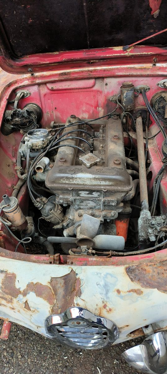 Une bonne base pour une restauration. Carte grise Alfa Romeo complète et certifiée. Moteur Alfa Romeo d'origine (numéros concordants).