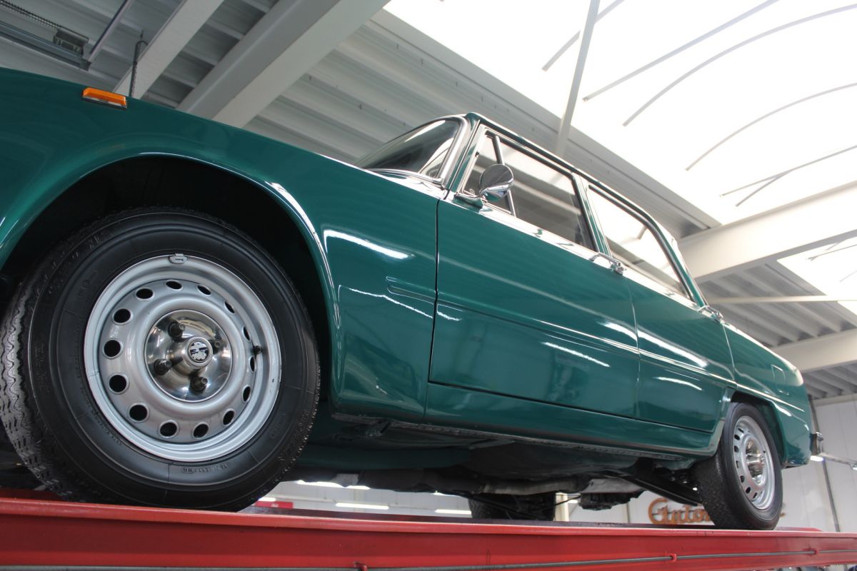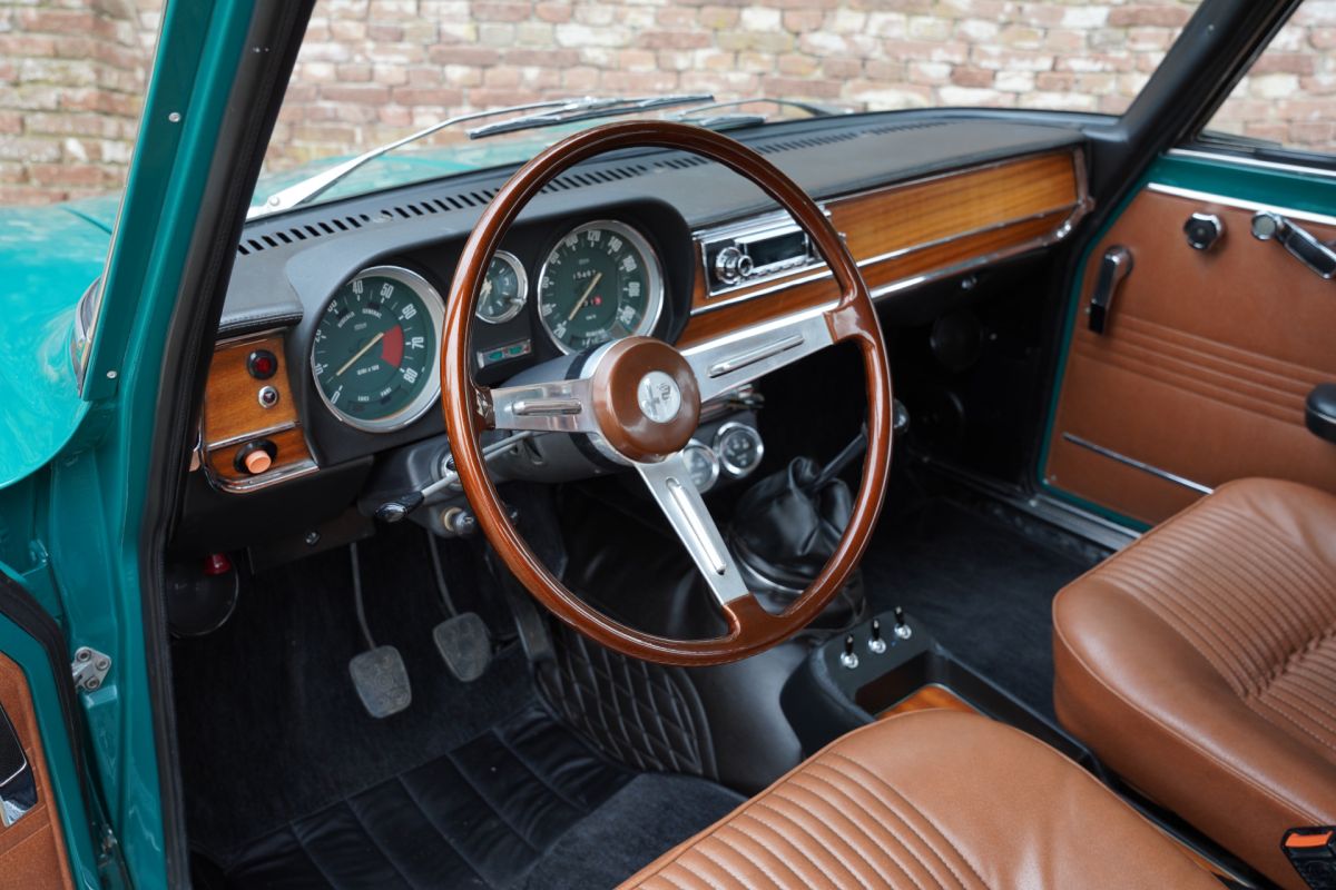 It is rare to find an Alfa Romeo that still retains its original sheet metal after more than 50 years. This Giulia was repainted once in the past, but remains completely original. Opening the door feels like stepping back into 1970s Italy. The upholstery has been carefully refreshed where needed, with new carpets and new leather that elevate the interior to a higher level. The dashboard, gauges, and even the headliner are in excellent condition. A retro-style radio with modern features has also been installed, offering the perfect blend of classic looks and comfort.