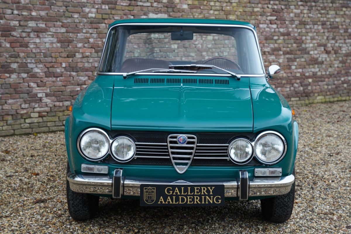 This Alfa Romeo is so delightful that it brings an instant smile to our faces. It’s rare to find a car in such original condition. With only two owners since 1971, this Giulia has been a well-kept secret, part of a lovingly maintained collection. Finished in the refined “Pino Verde” with a brown interior, this Alfa exudes pure Italian flair. The original sheet metal has been preserved, and the car has never been fully restored, making this Giulia a true time capsule.