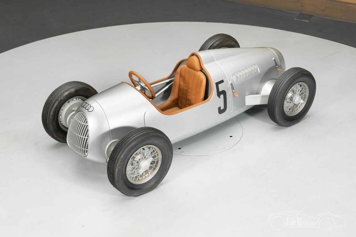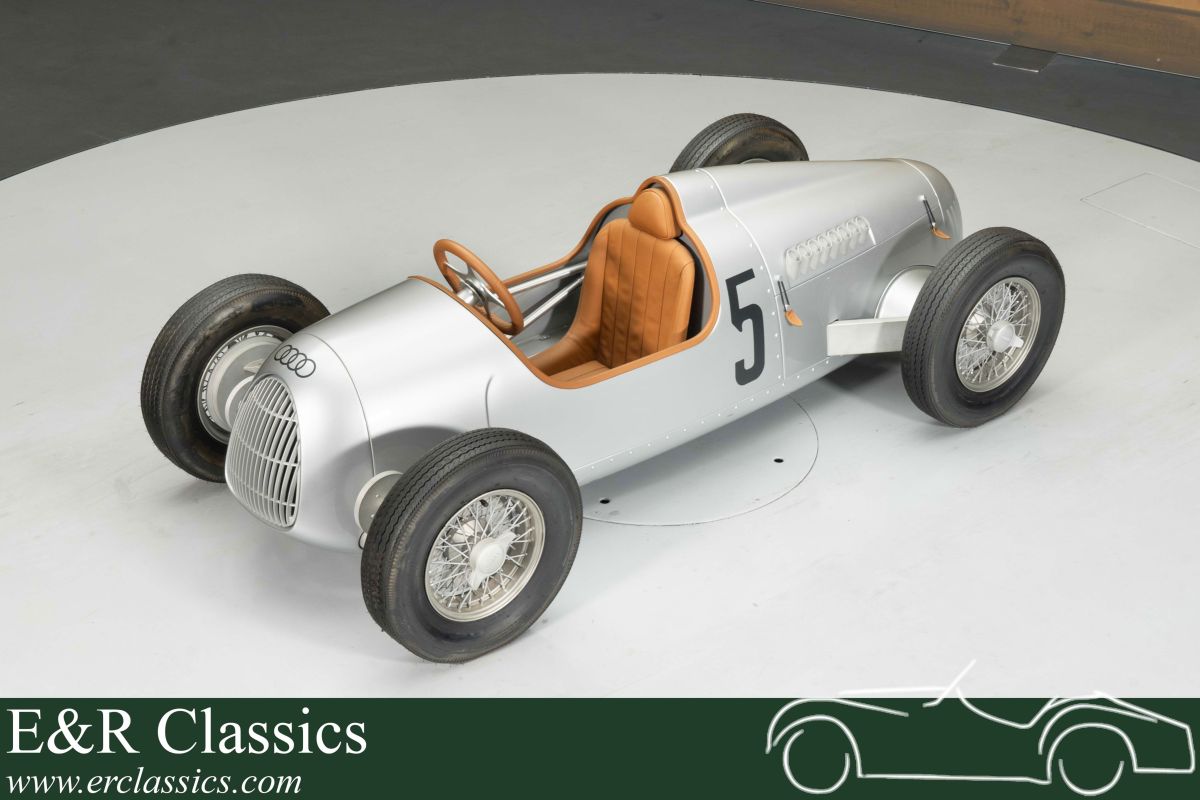 Audi Auto Union Type C Pedalcar | No. 392 of 999 | Mint Condition | 2008 Highlights: - Original factory-supplied and handcrafted by Audi - 100% new, never used - Number 392 of only 999 built - Pedalcar with 7 gears - Unique and rare collector's item Audi Auto Union Type C Pedalcar for sale Attention Audi enthusiasts! Are you looking for a unique and rare collector's item? Then read on! This time, we're not offering a classic, but a genuine Pedalcar based on the world-famous Auto Union Type C. One of the most famous Silver Arrow racing cars of the 1930s. Only 999 examples were handcrafted by Audi, and the one we're offering for sale is production number 392. This Pedalcar is in pristine condition because it has never been used. It is completely handmade under license from Audi and consists of no fewer than 900 different parts. The pedal car features an aluminum frame, a 7-speed pedal, a handbrake with a lock function, a detachable steering wheel, and dual hydraulic brakes. A truly unique item for collectors of German classic cars and Audi enthusiasts. The Auto Union Type C Pedalcar is 202 cm long and 62 cm high. The total weight of the pedal car is approximately 80 kg. Buy an Audi Auto Union Type C Pedalcar? Are you looking for an Audi Auto Union Type C Pedalcar? Then leave your details via the contact form on this page or call us directly at +31 416 751 393. Our sales representatives are happy to answer all your questions or even create a personalized shopping video for you. We can help with transport. Within Europe you do not need to pay any import duties. Trading in, buying and consignment possible. In some countries we can help with financing. Ask our sales staff.