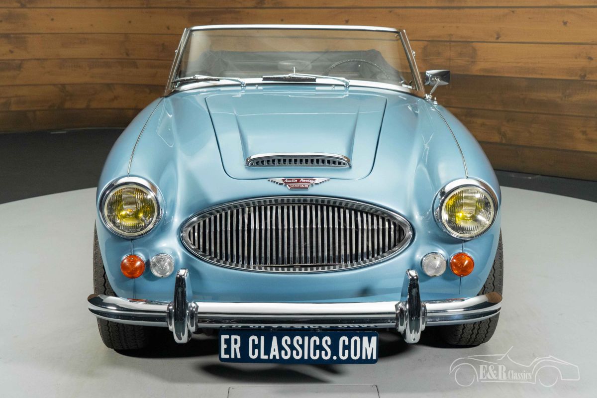 Austin-Healey 3000 MK3 | Good Condition | Overdrive | 1966 Highlights: - Car is in good condition - Ice Blue / Old English White two-tone paintwork - 2.9-liter 6-cylinder engine - 4-speed manual transmission with overdrive Austin-Healey 3000 MK3 in good condition for sale The 1966 Austin Healey 3000 MK3 is one of the most beloved British sports cars of the 1960s. This model, also known as the "Big Healey," is renowned for its powerful performance and characterful driving experience. Under the long hood lies the 2.9-liter 6-cylinder engine, which delivers impressive torque and the characteristic, deep sound that Healey enthusiasts love. Combined with the 4-speed manual transmission with overdrive, this classic offers both sporty performance and comfortable touring. This Austin Healey is in excellent condition and perfectly represents the charm and technology of an iconic British roadster from the 1960s. Austin-Healey 3000 MK3 for sale in Ice Blue This Austin Healey is also a real eye-catcher. The bodywork is finished in stylish Ice Blue with two-tone Old English White paintwork, a classic color combination that contrasts beautifully with the chrome details. The chrome wire wheels enhance the car's authentic sporty character. When the weather turns, the dark blue Sonnenland soft top can be easily installed. The interior is upholstered in black leather and exudes pure British class, with a stylish dashboard featuring wood accents and classic instruments. The combination of the elegant exterior and the characterful interior makes this Austin Healey a timeless classic that any enthusiast will enjoy. Buying an Austin Healey 3000 MK3? Are you looking for a 1966 Austin Healey 3000 MK3? Please leave your details via the contact form on this page or call us directly at +31 416 751 393. Our sales team will be happy to answer all your questions or even create a personalized shopping video for you. We can help with transport. Within Europe you do not need to pay any import duties. Trading in, buying and consignment possible. In some countries we can help with financing. Ask our sales staff.