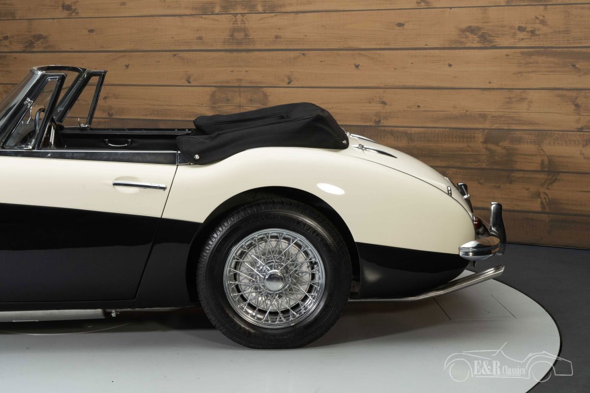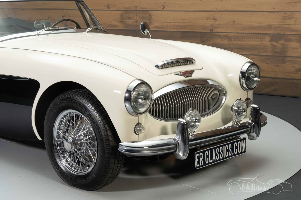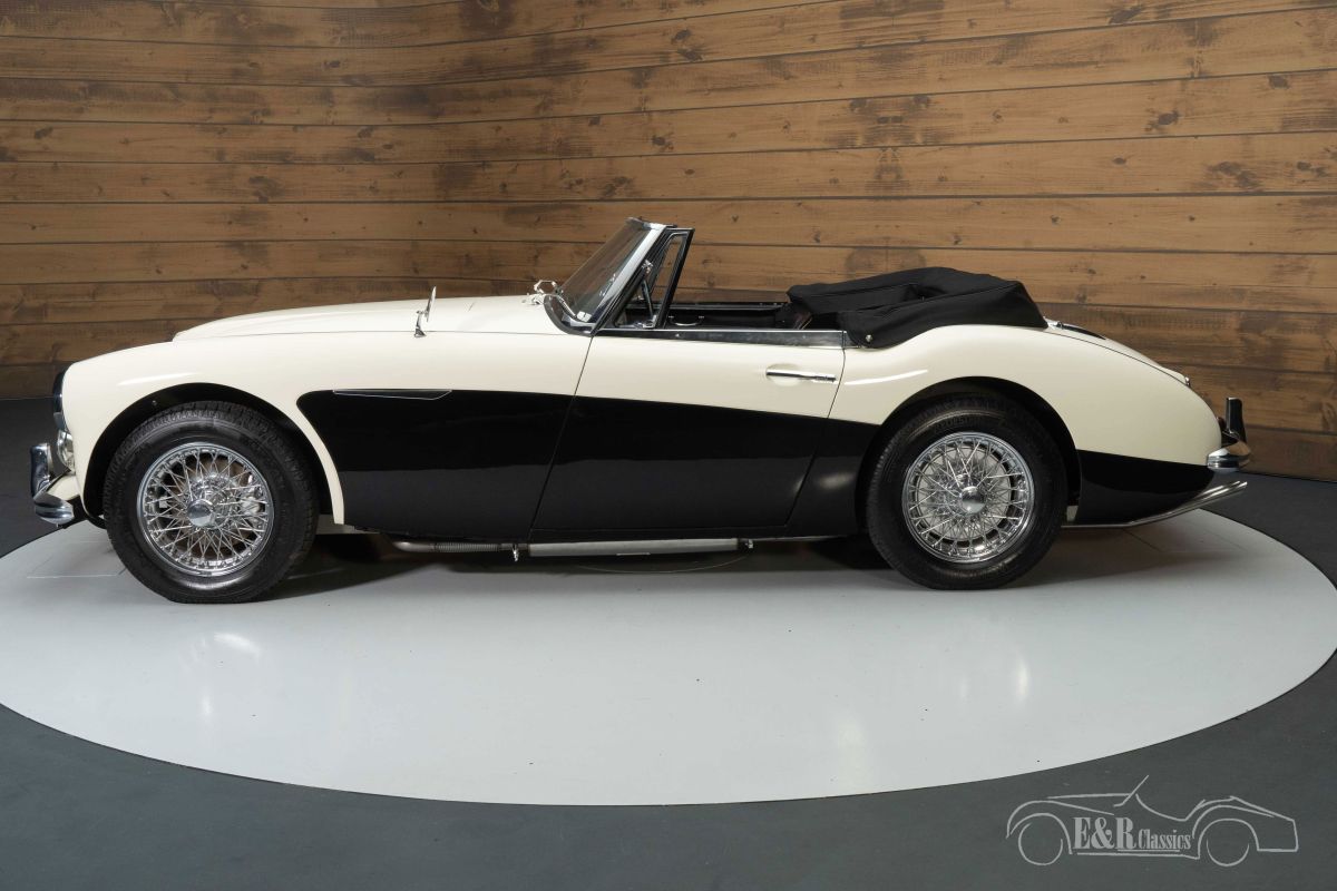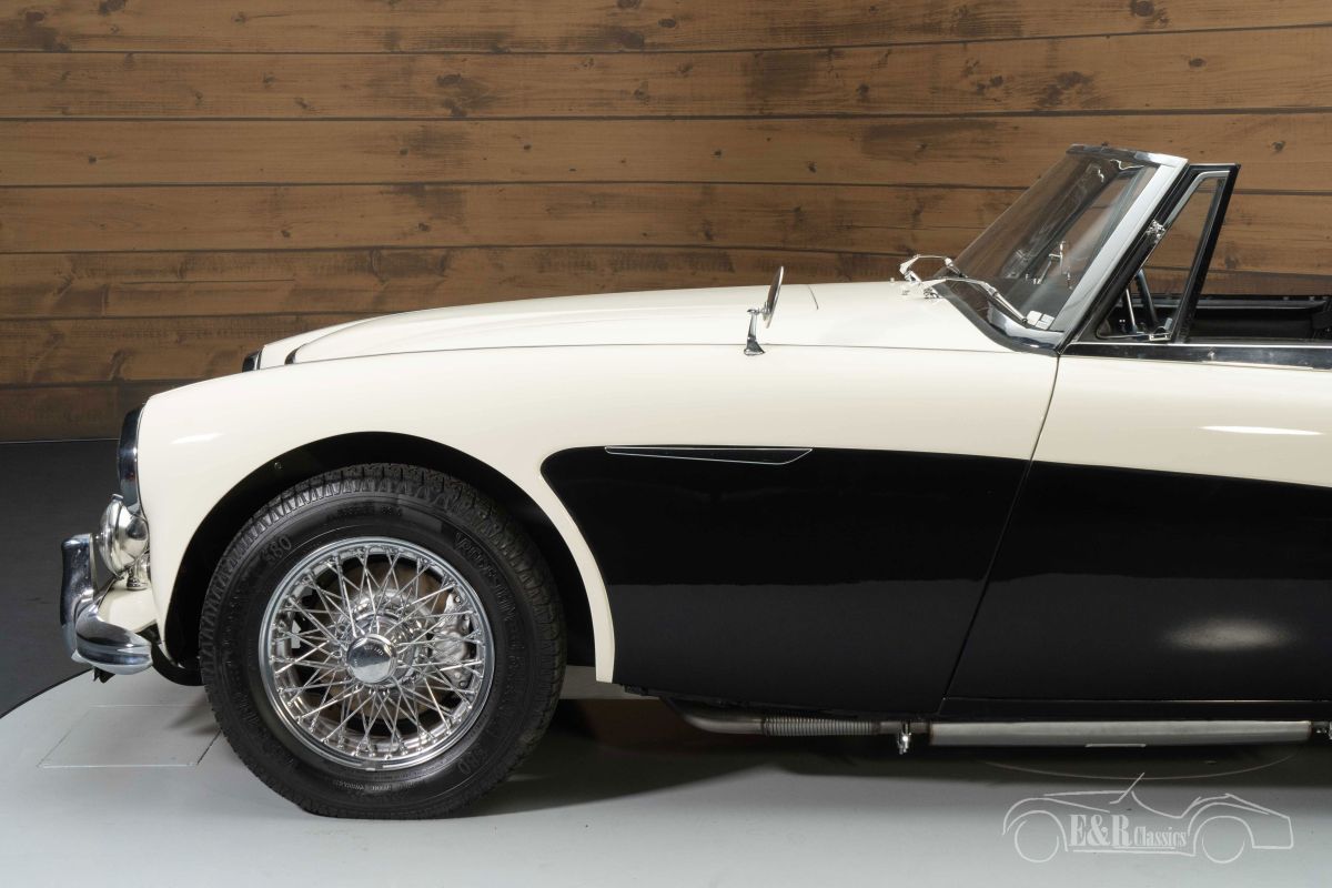 Austin Healey 3000 MK3 | Restored | European car | 1964 Highlights: - Restored - Delivered new in the Netherlands - 35 years 1 owner - Original booklets + brochure present European Austin-Healey 3000 MK3 for sale We offer for sale this beautiful Austin-Healey 3000 MK3. This Healey was delivered new in 1964 in the Netherlands and is therefore an original European delivered car. The car comes with a lot of history and even contains the original instruction booklets and brochure. The previous owner owned the car for no less than 35 years and always maintained it with great care. The Austin-Healey has always been maintained by a classic car specialist and is therefore in good technical condition. It is powered by the 2912cc 6-cylinder engine mated to a 4-speed manual transmission with overdrive. Austin-Healey 3000 MK3 in Old English White for sale The Austin-Healey 3000 MK3 that we offer for sale here is executed in the beautiful colour Old English White. To give the car extra character, a black surface on the side has been chosen, which makes it a real eye-catcher. The chrome wire wheels and accessories complete the classic look. The interior is in a neat, original condition and has a walnut dashboard. The upholstery shows some minor signs of wear here and there. A new soft top has been installed that you can fold in an instant so that you can enjoy the outdoors while touring. Want to buy Austin Healey 3000 MK3? Are you looking for a 1964 Austin-Healey 3000 MK3? Then leave your details via the contact form on this page or call +31 416 751 393 directly. Our sales staff will be happy to answer all your questions or even make a personal shop video for you. We can help with transport. Within Europe you do not need to pay any import duties. Trading in, buying and consignment possible. In some countries we can help with financing. Ask our sales staff.