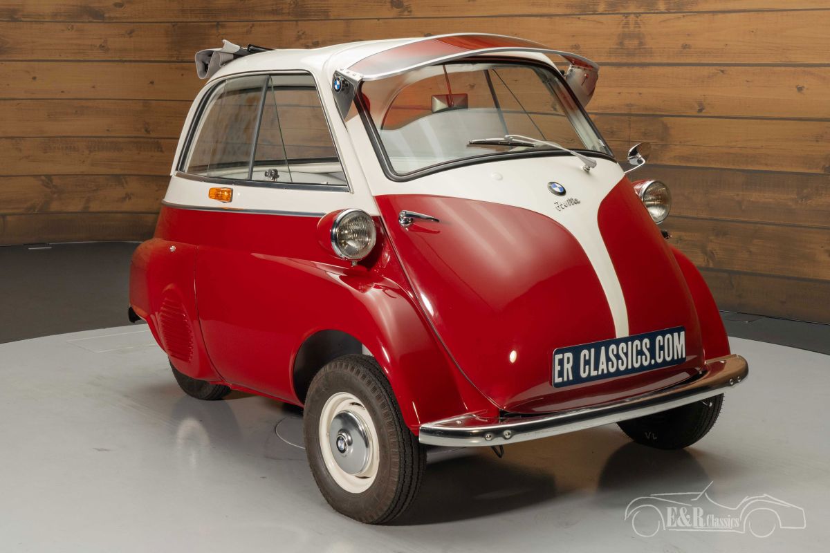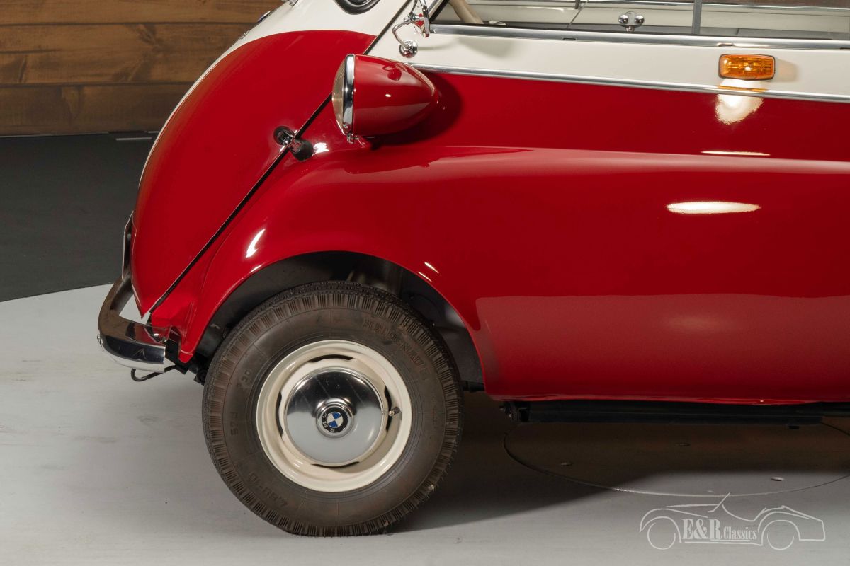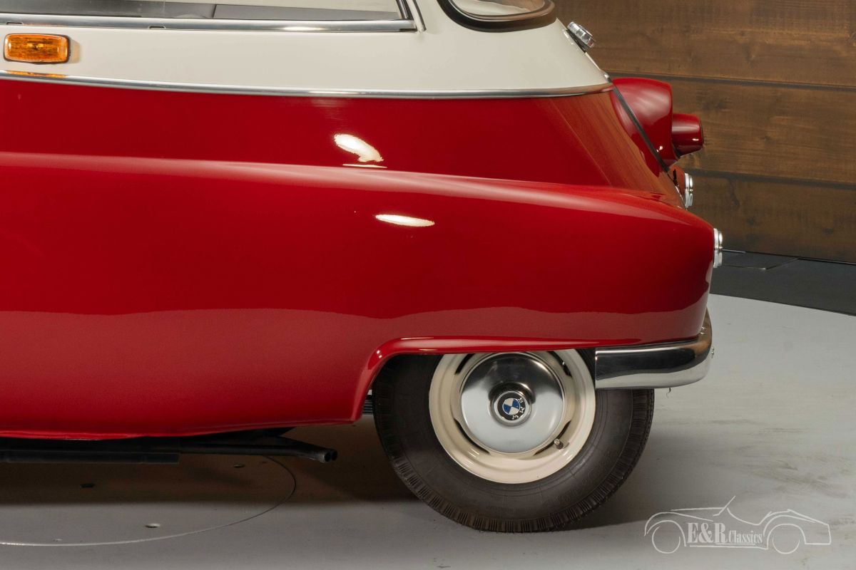 BMW Isetta 250 | Extensively restored | Very good condition | 1957 Highlights: - Extensively restored - 245cc 1-cylinder engine - 4-speed manual gearbox - Folding roof Extensively restored BMW Isetta 250 for sale We offer for sale this beautiful BMW Isetta 250 from 1957. The Isetta comes from the private collection of a well-known customer of E&R Classics and has recently been extensively restored. This Isetta is in very good condition, both optically and technically. It is powered by the 250cc 1-cylinder engine linked to a 4-speed manual gearbox. BMW Isetta 250 with two-tone paint for sale A BMW Isetta is a rare sight that you will not easily encounter, let alone in the condition this car is in. The two-tone paintwork looks beautiful on the BMW and makes it a real eye-catcher. The interior is a combination of artificial leather and fabric with a nice diamond pattern that fits perfectly with a 1950s classic. The Isetta is also equipped with a red sun visor and a folding roof so you can enjoy the fresh air while driving. BMW Isetta 250 for sale at E&R Classics Are you looking for a BMW Isetta 250 from 1957? Please leave your details via the contact form on this page or call +31 416 751 393 directly. Our sales staff will be happy to answer all your questions or even make a personal shop video for you. We can help with transport. Within Europe you do not need to pay any import duties. Trading in, buying and consignment possible. In some countries we can help with financing. Ask our sales staff.