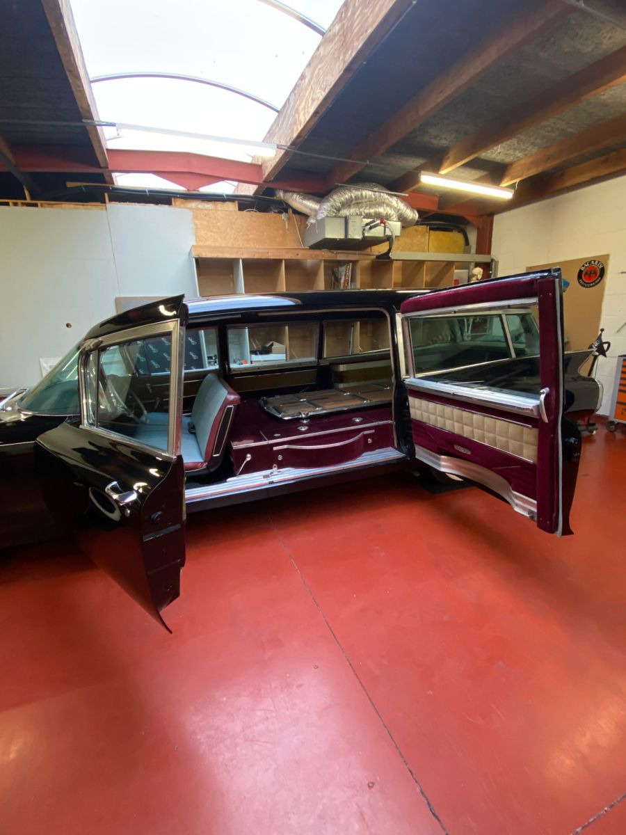Gedeeltelijk gerestaureerde Miller Meteor Futura 3-weg lijkwagen uit 1960 te koop.