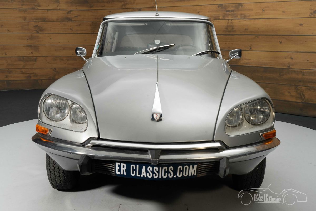 Citroën DS 23 Pallas | Restored | Citromatic semi-automatic | 1973 Highlights: - Restored in 2003 - One owner for 22 years - 2.3 liter 4-cylinder engine - Semi-automatic Citromatic gearbox - Luxury Pallas version Restored Citroën DS 23 Pallas for sale The 1973 Citroën DS 23 Pallas is one of the most progressive classics ever built – a combination of groundbreaking technology and timeless elegance. This version is equipped with the powerful 2.3 liter four-cylinder engine and the characteristic semi-automatic Citromatic gearbox, which ensured an unparalleled driving experience. In 2003, this DS was restored and has remained in the hands of the same owner for no less than 22 years – a testament to the care and dedication. As the top model in the DS series, the Pallas distinguishes itself with luxurious details and progressive technology, such as the famous suspension and the unique 'mushroom' brake knob. Citroën DS 23 Pallas with Citromatic gearbox for sale The silver-grey paintwork perfectly suits the elegant body shape and allows the streamlined lines to come into their own beautifully. The original hubcaps and refined chrome accents give the car its classic look. Inside, the interior exudes character: the black leather interior shows a beautiful patina that reflects the rich history of this car. The characteristic single-spoke steering wheel and the chic finish of the door panels complete the interplay between the inside and outside. A rare combination of style, technology and history - ready for an enthusiast with an eye for originality. Buy a Citroën DS 23 Pallas? Are you looking for a Citroën DS 23 Pallas from 1973? Then leave your details via the contact form on this page or call directly on +31 416 751 393. Our salespeople will be happy to answer all your questions or even make a personal shop video for you. We can help with transport. Within Europe you do not need to pay any import duties. Trading in, buying and consignment possible. In some countries we can help with financing. Ask our sales staff.