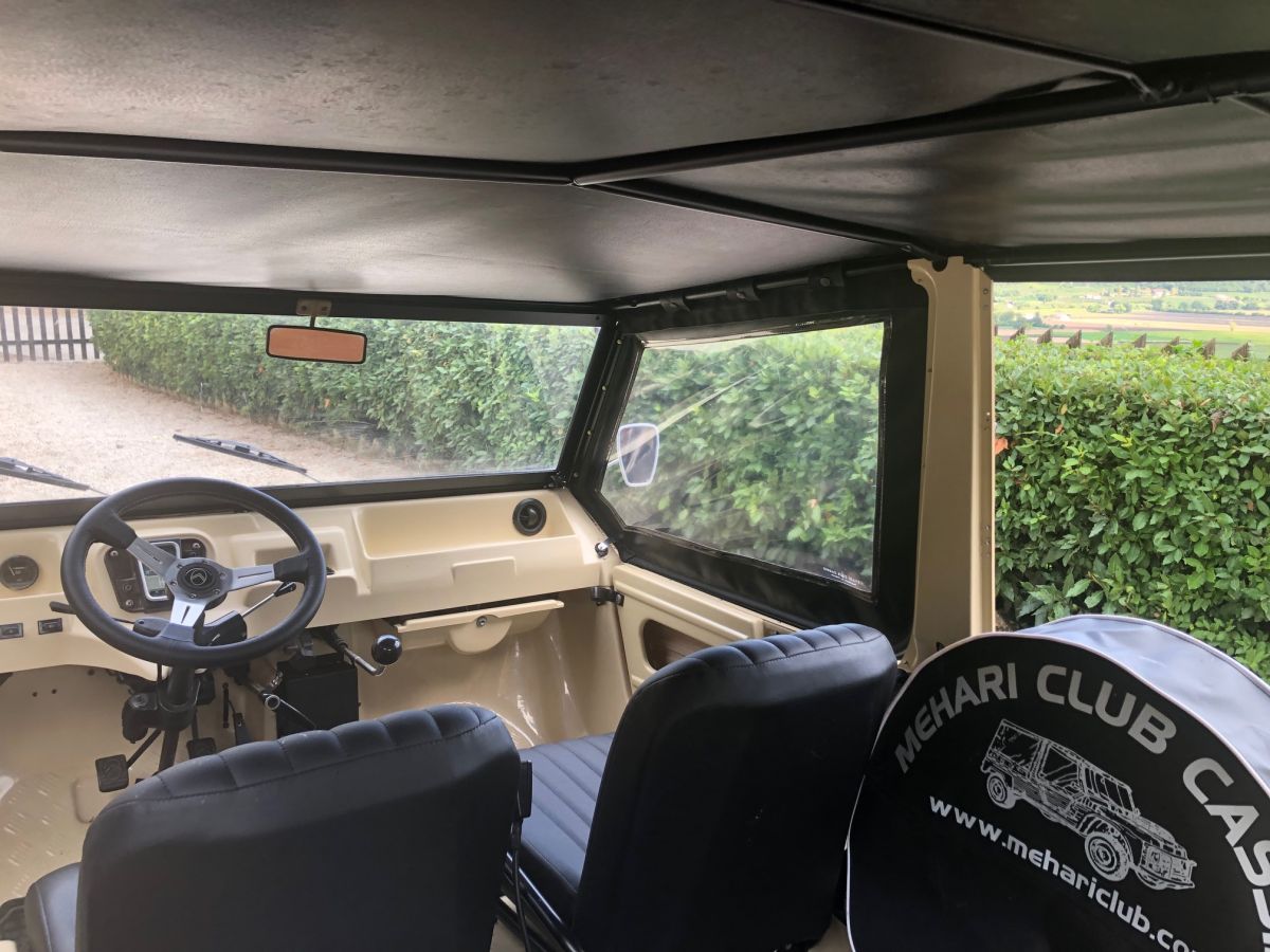 Questa Citroën Mehari del 1975 davvero impeccabile è rinata come nuova l’23 marzo 2023 dopo un anno di attenta e approfondita rinascita con carrozzeria nuova al 100% e interni nuovi al 100%. Questa particolare Mehari ha diversi optional che non erano disponibili quando questa Mehari fu costruita nel 1975, incluso un sedile del passeggero anteriore inclinabile in avanti che consente l'accesso ai sedili posteriori. È dotato di tetto invernale completo e pannelli laterali.