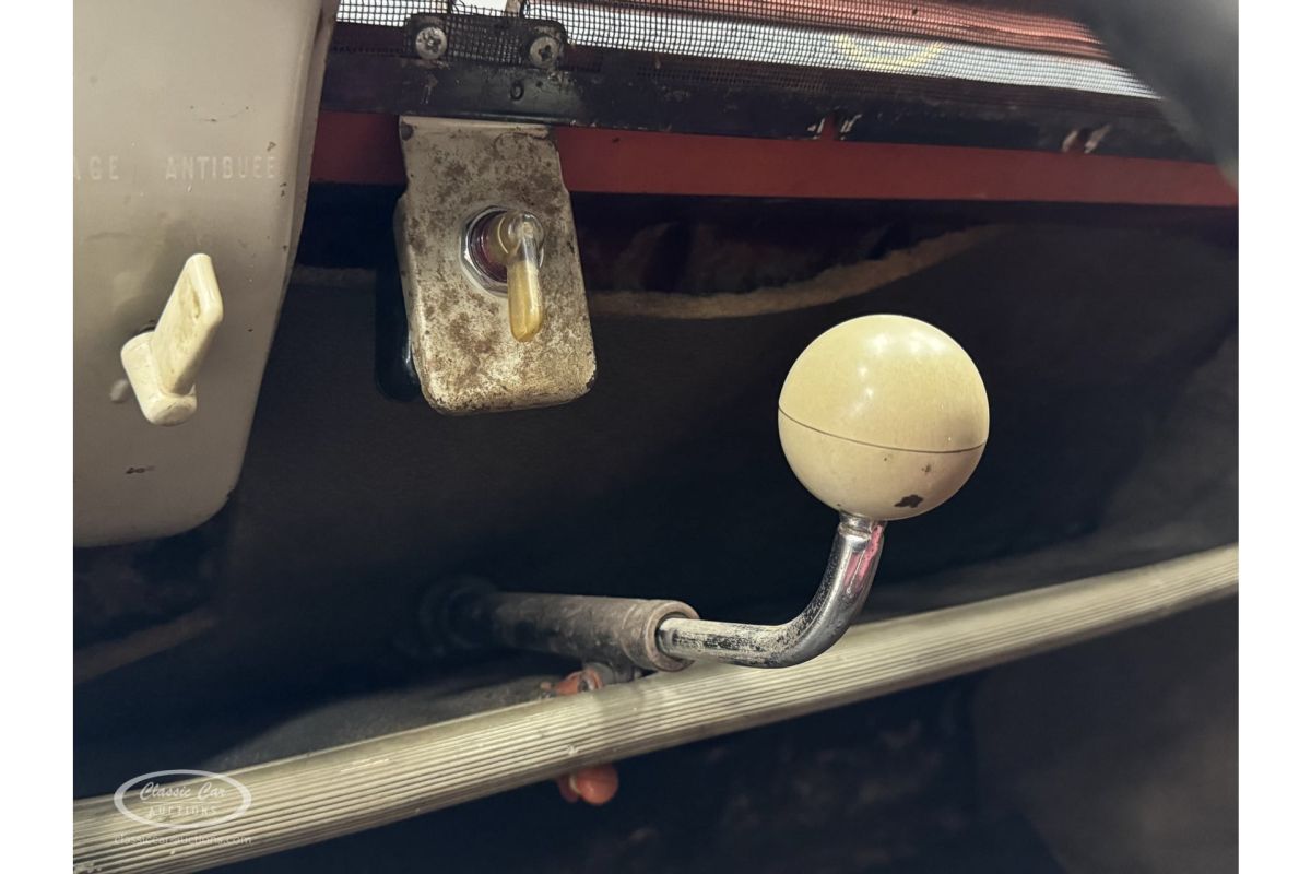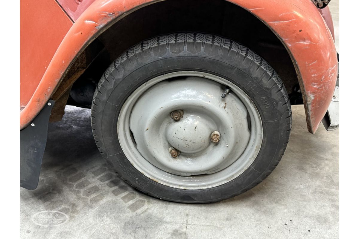 Trade-in car. This 1959 Citroën 2CV AZ is one of the last examples with the characteristic ribbed hood, which gives it a unique and recognizable appearance. This particular model is finished in the charming color Rouge Bolèro, which adds to the French charm of this car. The 2CV is known for its simplicity and unique character, and this example is a beautifully preserved icon in that.