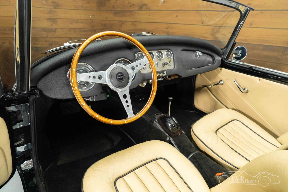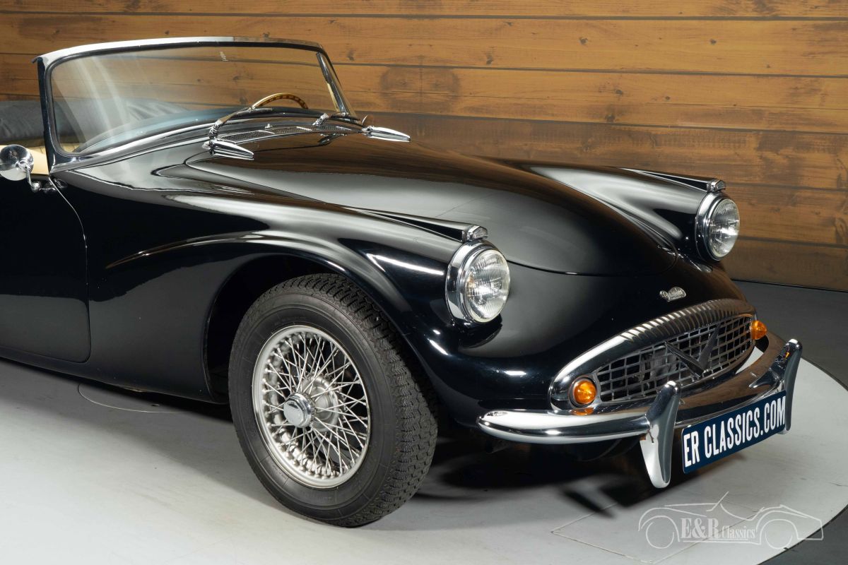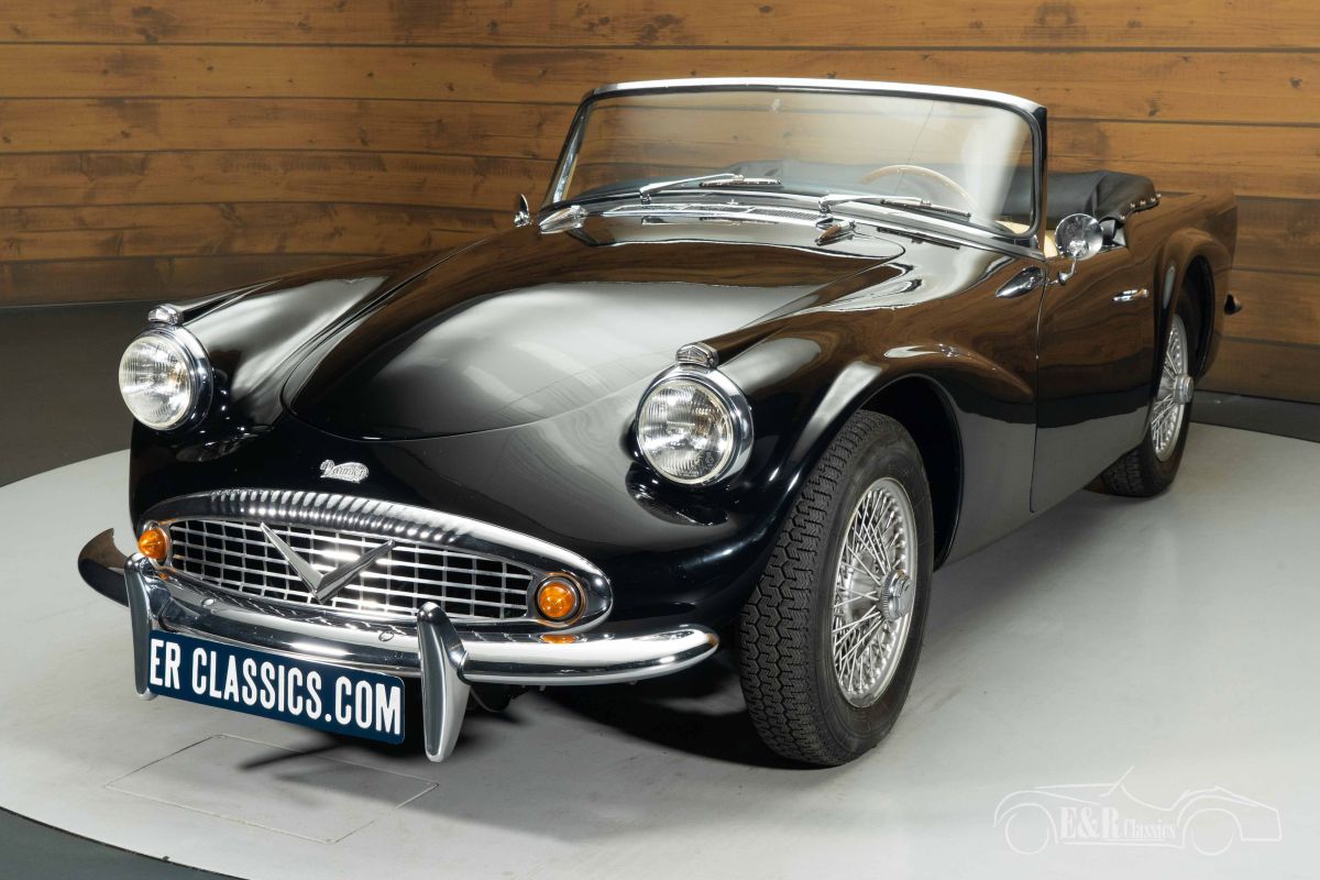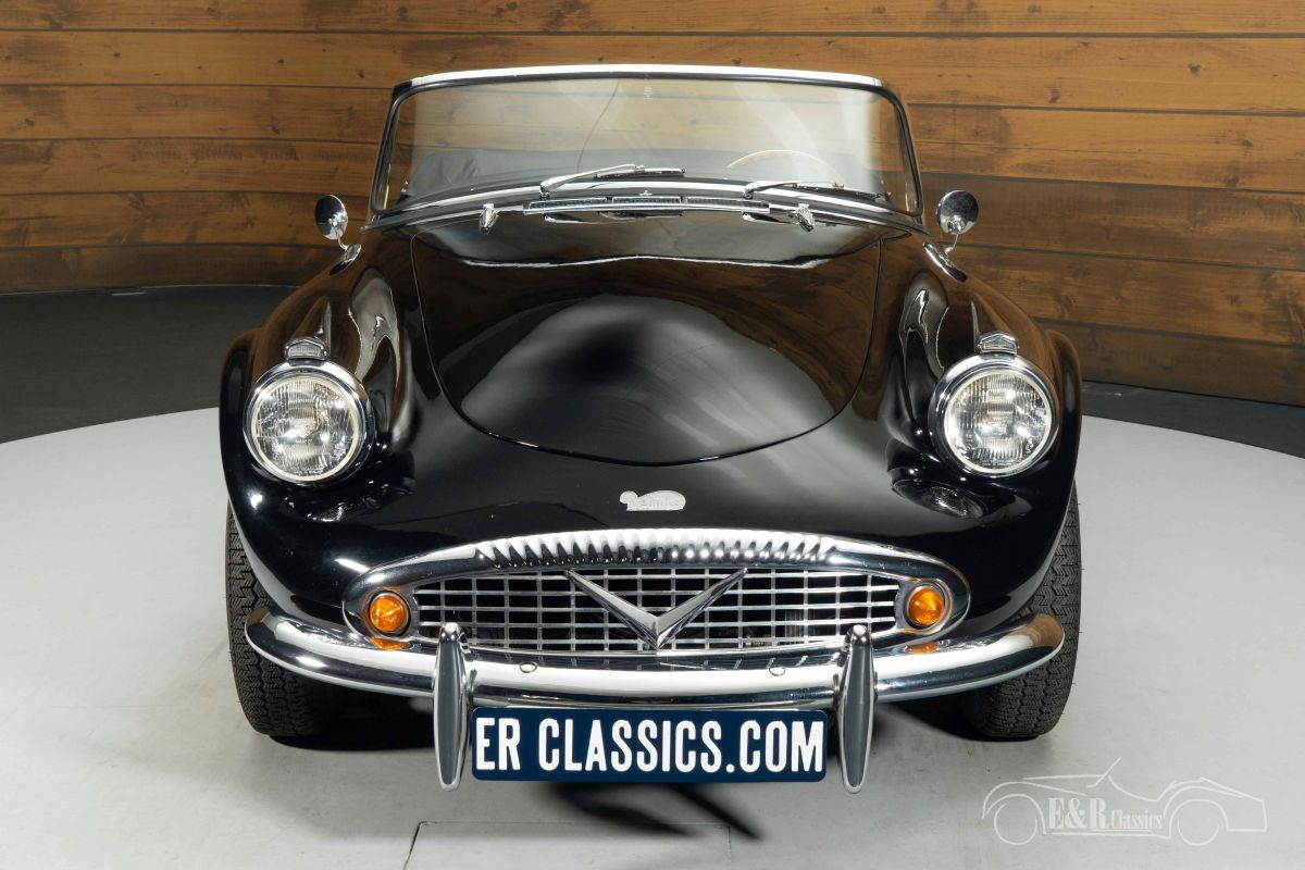 Daimler SP250 Dart LHD | Restored | Automatic | Hard top | 1961 Highlights: - Photo report of the restoration available - 2.5 liter V8 engine with automatic transmission - Rare hard top + soft top - Only 2 previous owners - Original European car Left-hand drive Daimler SP250 Dart for sale We offer for sale this beautiful Daimler SP250 Dart from 1961. Only 2645 units of the Daimler SP250 were built and the classic that we offer here is an original left-hand drive version that was delivered new in the Netherlands. The classic has been body-off restored in the past and the restoration is recorded in an extensive photo report. There are also various invoices of the maintenance performed. The Daimler has only had 2 previous owners. It is powered by the powerful 2.5 liter V8 engine that is coupled to an automatic transmission. The automatic transmission was installed later and is very rare in a Dart. Daimler SP250 Dart with rare hard top for sale A Daimler Dart is already a rare appearance in itself, but the one we offer here is even more special because of its rare hard top. The hard top looks great on the classic and emphasizes the special curves of the Dart. Furthermore, the car is equipped with spoke wheels and a black soft top. The black paintwork looks great on the Daimler and makes the chrome pop. The interior is equipped with beige leather upholstery with black piping and a Moto-Lita sports steering wheel. Daimler SP250 Dart for sale at E&R Classics Are you looking for a Daimler SP250 Dart from 1961? Then leave your details via the contact form on this page or call directly on +31 416 751 393. Our salespeople will be happy to answer all your questions or even make a personal shop video for you. We can help with transport. Within Europe you do not need to pay any import duties. Trading in, buying and consignment possible. In some countries we can help with financing. Ask our sales staff.