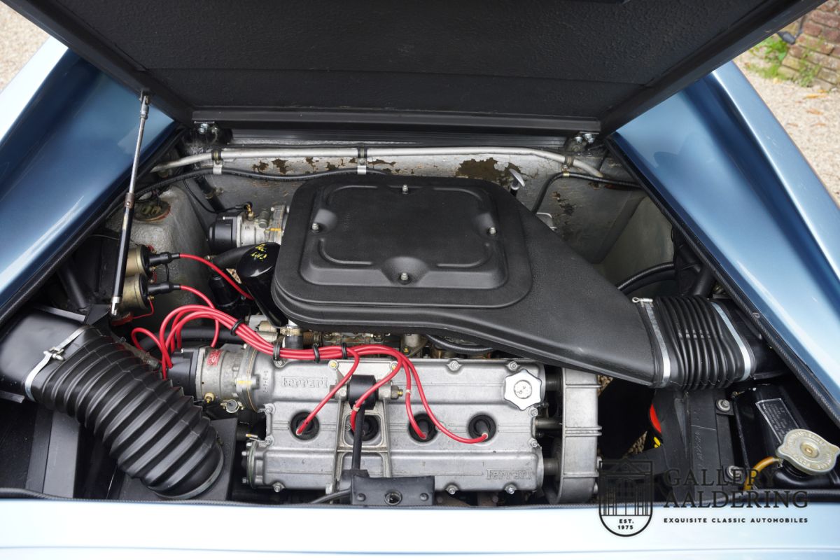 This Dino has a V8 with a mere 1,990 cc engine volume. It was especially intended for the Italian market in order to avoid hefty tax on engines over 2 litres. With 180 hp it may not be the fastest Ferrari ever but it makes it up with a sensational experience of handling and road holding. A dino 208 GT4 always drives well and this one is no exception. Because of its light weight it is none the less a very quick car, its performance is however simply trumped by the driving pleasure.