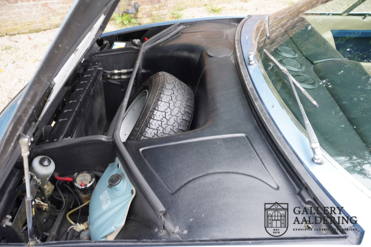 A look inside does not meet us with any unpleasant surprises. The more or less original upholstery is in an admirable condition, with the blue centre pieces perfectly matching the original blue carpets. It all has a typical 70’s atmosphere. The fully functioning dashboard looks lovely, decked with its many gauges and instruments. All of the switching gear is also in great working order with many of them seated on the dashboard and those Ferrari could not fit there housed on the middle console, where we also find the original factory-fitted Borletti air-conditioning.