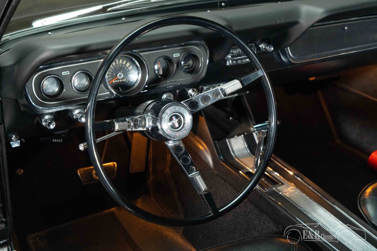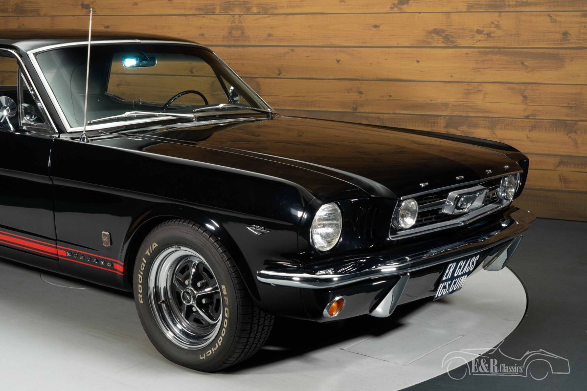 Ford Mustang Coupe | Restored | GT-Look | 1966 Highlights: - Restored - GT-Look - 289CUI V8 engine - Automatic transmission Restored Ford Mustang Coupe for sale The 1966 Ford Mustang Coupe is an icon of American automotive history and symbolizes freedom, power, and affordable performance. This specific example is equipped with the beloved 289 CUI (4.7-liter) V8 engine, paired with an automatic transmission, ensuring a smooth yet powerful driving experience. This Mustang has been restored and is in well-maintained condition, preserving the character of the original car. The combination of engineering, history, and appearance makes this model one of the most sought-after classics from the 1960s. Ford Mustang Coupe with GT-Look for sale The exterior features stylish black paintwork, which perfectly complements the sporty GT-look of this Mustang. Details such as the characteristic grille, accents, and rims enhance the classic yet powerful appearance. The black interior forms a beautiful whole with the exterior and exudes timeless class. The center console provides extra comfort and a more luxurious look to the interior, while the dashboard and finish are typical of the 1960s Mustang experience. This combination of color scheme and trim makes the whole particularly attractive to enthusiasts of original yet stylishly executed American classics. Looking to buy a 1966 Ford Mustang Coupe? Are you looking for a 1966 Ford Mustang Coupe? Then leave your details via the contact form on this page or call directly at +31 416 751 393. Our sales representatives will be happy to answer all your questions or even create a personal shop video for you. We can help with transport. Within Europe you do not need to pay any import duties. Trading in, buying and consignment possible. In some countries we can help with financing. Ask our sales staff.