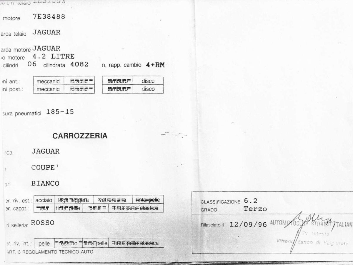 Immatricolata nuova nel 1967, questa splendida Jaguar E-Type 4.2 Coupé Serie 1 è stata reimmatricolata a Verona nel 1978, mantenendo da allora le targhe e la carta di circolazione originali.