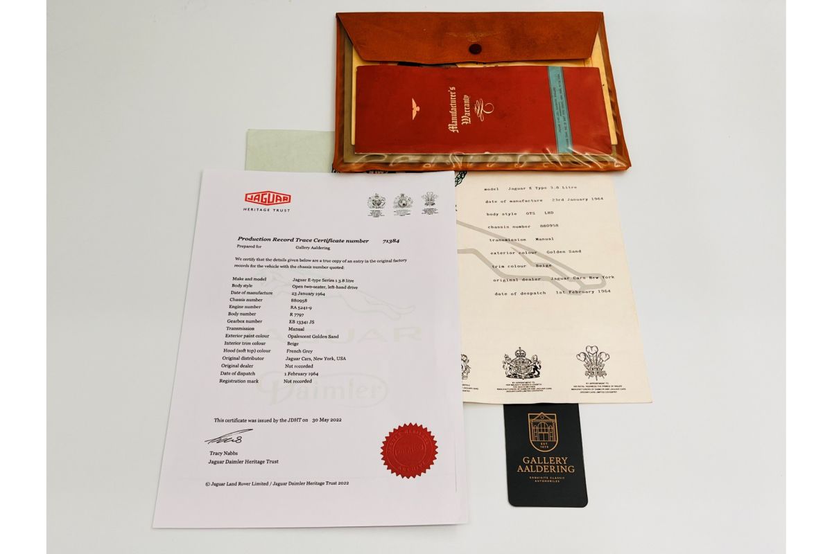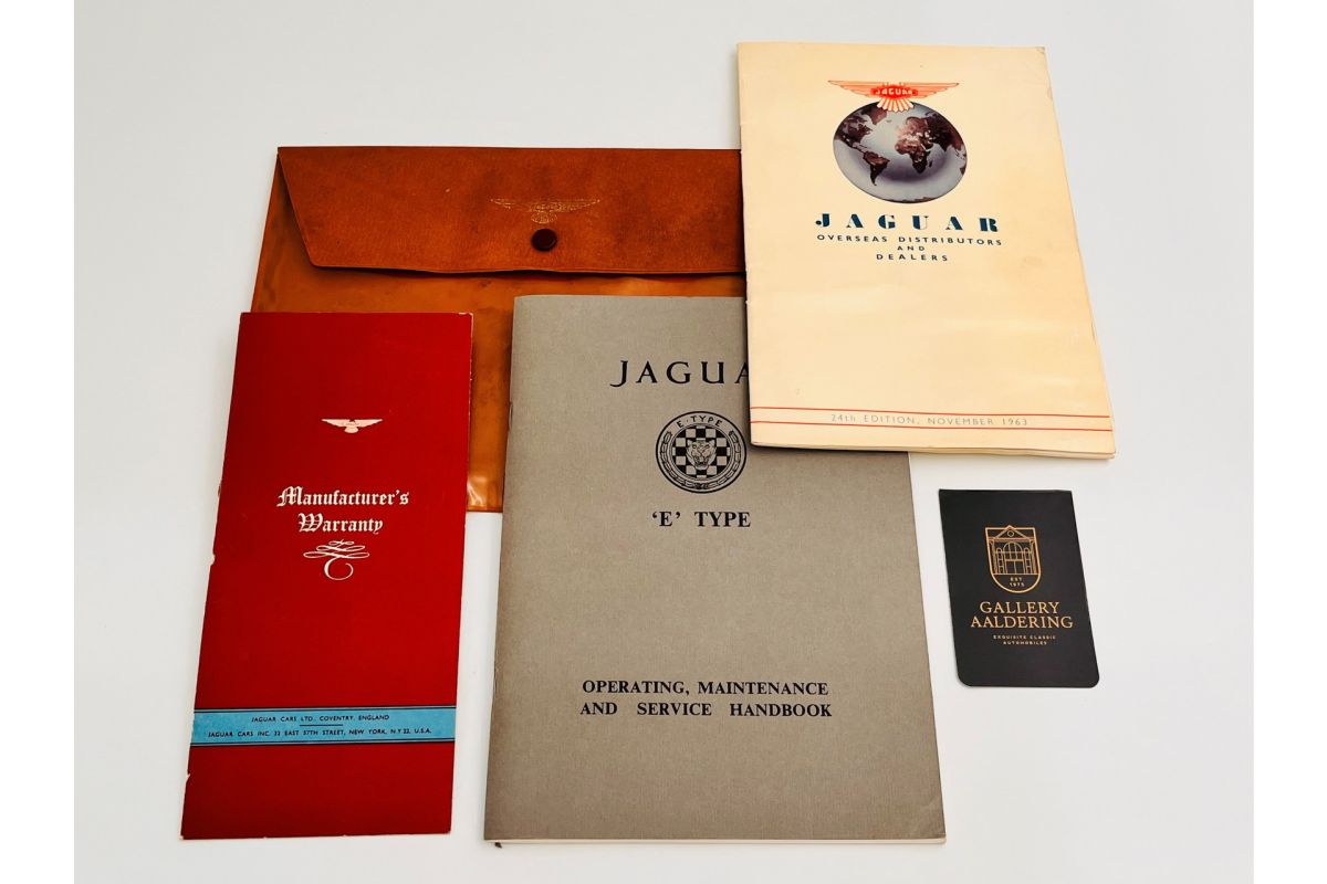 The Jaguar E-Type, a natural classic. Elegant and sporty combined with heaps of class. By and large the series 1 of the in 1961 sportscar has the most appeal. It is the version as envisioned by Malcolm Sayer. Small taillights sited above the bumper. From series II on the lights were lowered and American law saw the disappearance of the lovely glass headlight covers that gave the car its smooth appearance. So not wholly coincidental that this early Series1 OTS, after rolling off the production line on the 23rd February 1963 found its way to its first customer when supplied by Jaguar Cars in New York just a week later.