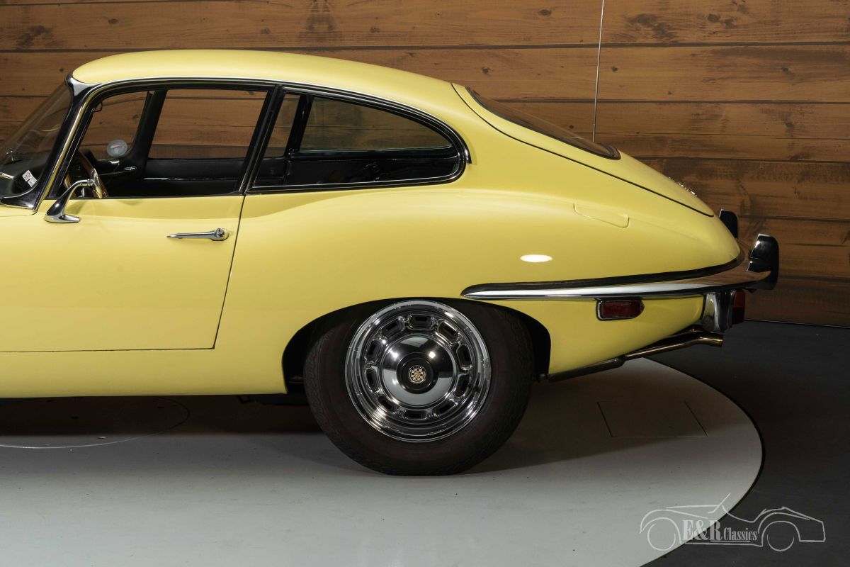 Jaguar E-Type Series 2 Coupe | Restored | Known history | 1970 Highlights: - Restored - Known maintenance history - Matching Numbers 4.2 Liter, 6-cylinder engine - Original factory colour Primrose Yellow Restored Jaguar E-Type Series 2 Coupe for sale We present for sale this stunning 1970 Jaguar E-Type Series 2 Coupe. This E-Type comes from a well-known customer of E&R Classics who traded in this classic for another. The E-Type Coupe has been restored in the past and comes with a comprehensive maintenance history. It is powered by the matching numbers 4.2 Liter, 6-cylinder engine paired with a 4-speed manual transmission. Jaguar E-Type Series 2 Coupe in Primrose Yellow for sale The Jaguar E-Type Series 2 Coupe we offer for sale here is truly a sight to behold. It is finished in the original factory colour Primrose Yellow, a yellow shade that looks stunning on this British Classic and gives it a distinctive character. The interior is in a neat condition and features black leather upholstery and a wooden sports steering wheel. The combination of the Primrose Yellow exterior paint and the black interior is exactly how the E-Type left the factory, executed to the original specifications. Jaguar E-Type Series 2 Coupe for sale at E&R Classics Are you in search of a restored 1970 Jaguar E-Type Series 2 Coupe? Please leave your details via the contact form on this page or call us directly at +31 416 751 393. Our sales representatives will gladly answer all your questions or even create a personal shop video for you. We can help with transport. Within Europe you do not need to pay any import duties. Trading in, buying and consignment possible. In some countries we can help with financing. Ask our sales staff.