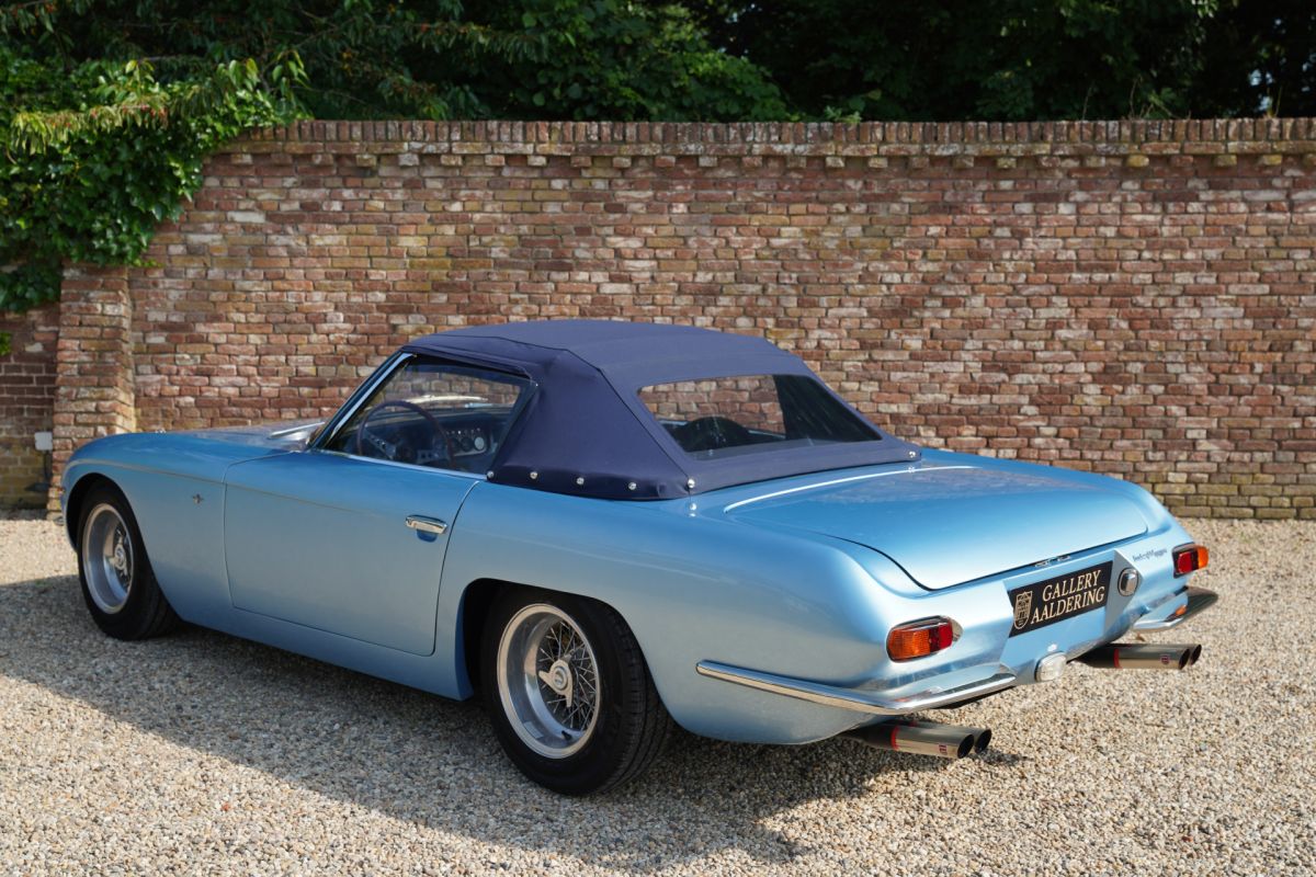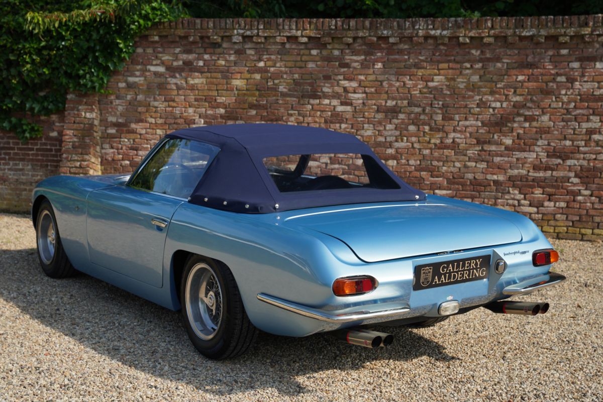 In the 1990s, the car was revisited once again to further refine the quality of the conversion, and between 2012 and 2013 the technical aspects were comprehensively overhauled in the Netherlands. Under the supervision of experienced specialists, this Lamborghini underwent a complete rebuild. Every detail of the conversion was brought to a higher level, making this 400 GT Spyder a true tribute to the original 350 GTS in both finish and appearance.
