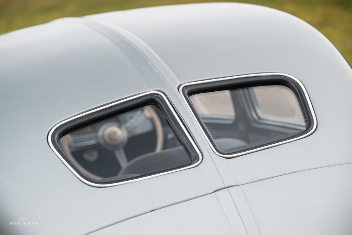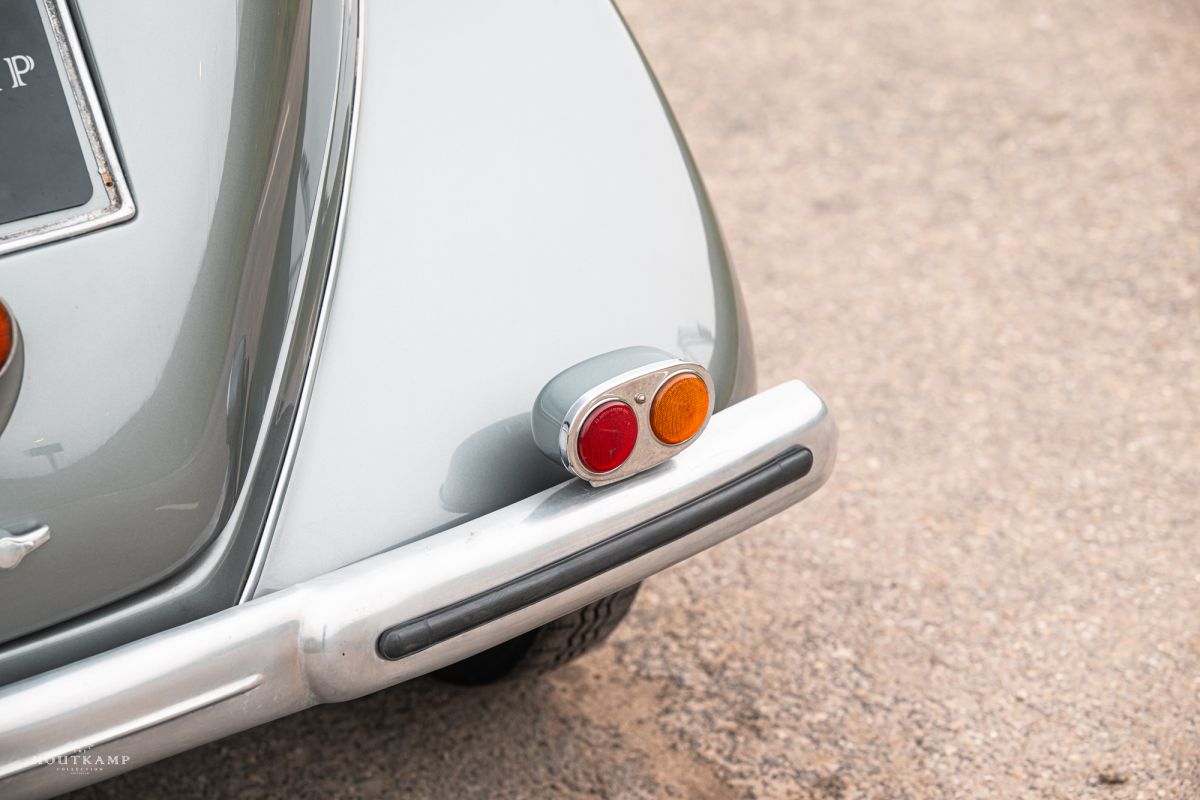 The car’s chrome and aluminum elements, including the bumpers, grille, and trim pieces, have been restored to their original lustre, showing no signs of wear or oxidation. These details shine brilliantly against the understated grey body, adding a touch of sophistication.