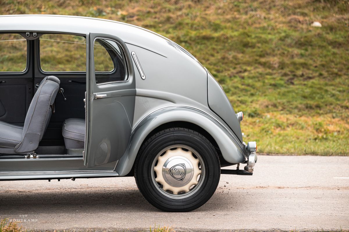 The exterior of this Lancia Aprilia is in impeccable condition.