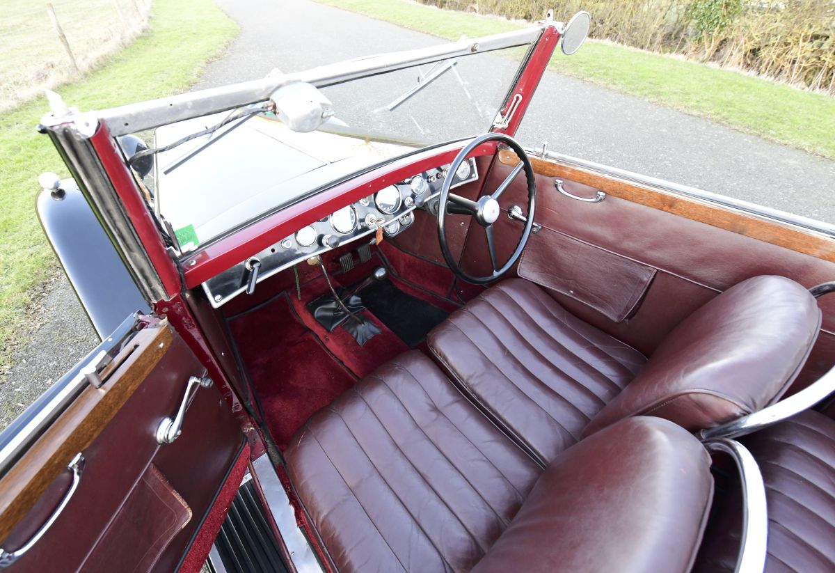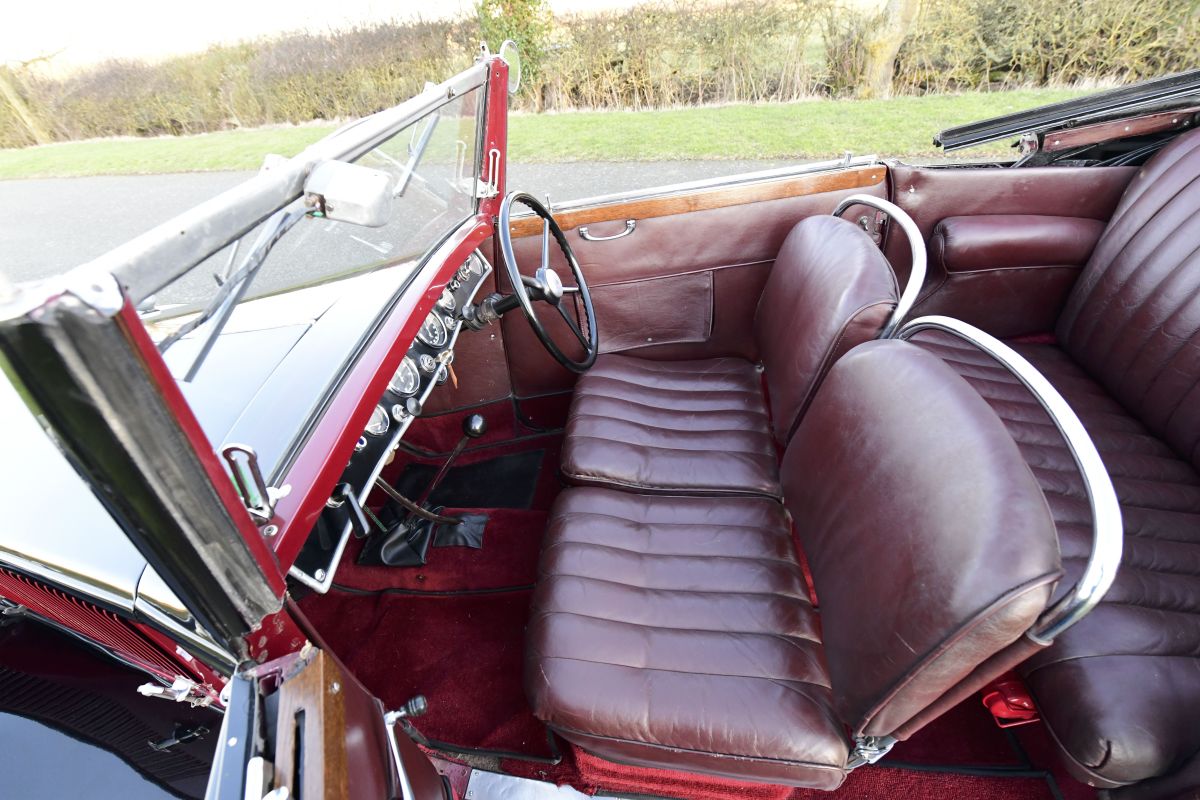 The Lancia engine starts readily and pulls well whilst making all the right Italian noises. A full complement of period instruments are located on the black painted dashboard. The Lancia Augusta Cabriolet is finished in burgundy over black paintwork.