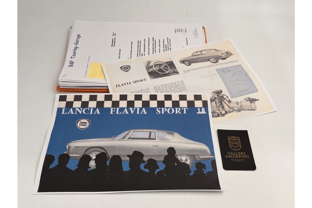 A rare and very attractive Lancia Flavia Sport Zagato 1800 Iniezione. Initially the Flavia was only available as 4-door with an aluminium 1500 Boxer engine. This was shortly followed by the Pininfarina designed short-base 2-door coupé. The convertible came from Vignale, whilst Zagato took charge of the design for the lightweight Sport version. Our car is the unique Lancia with bodywork by Zagato. This exquisite aluminium bodywork has wonderful stylistic characteristics such as the rear panoramic side windows the convex front side windows, the panoramic front window screen and the opening convex rear window screen. Only 626 Zagato’s were made of which only 512 had the 1800 engine. To make our car even more exclusive it not only has the 1800 engine and 5-speed gearbox, it also has the rare Kugelfisher injection system. There were only 32 Zagato’s made with this configuration, elevating this particular variant to the rarest ones about! It left the factory in 1966 and was first registered in Italy. A mechanical overhaul and restoration took place some years ago. The fine bodywork has good quality and well-fitting body panels. All decorative elements are in good order and the fine interior has been correctly looked after. Invoices indicate that a major service in 2013 was carried out by a well-known German Lancia specialist. This Zagato is in fine working order and drives perfectly. We welcome you to come and admire this exclusive Lancia with its rare Zagato bodywork!