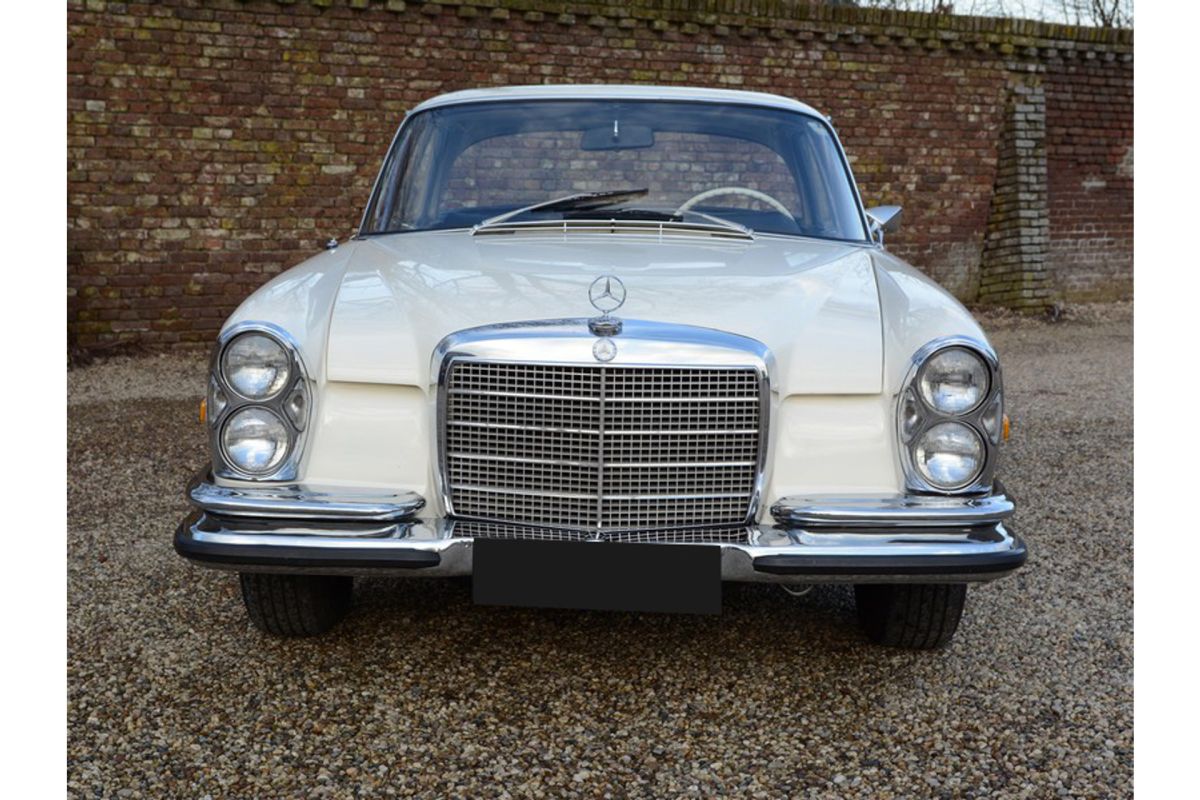 In the past, the car was repainted in the original colour ‘Weiss’ and fitted with a new blue leather interior. The bodywork is straight, and all panel alignments are nice. The underside of this Mercedes is solid. The 280SE features the original and therefore matching number's 3.5 V8 engine. This Mercedes comes with its ‘data card’. This makes this example an exceptional 280 SE Coupé, which rarely appears on the market.