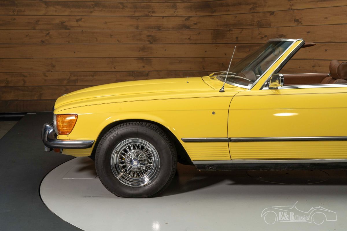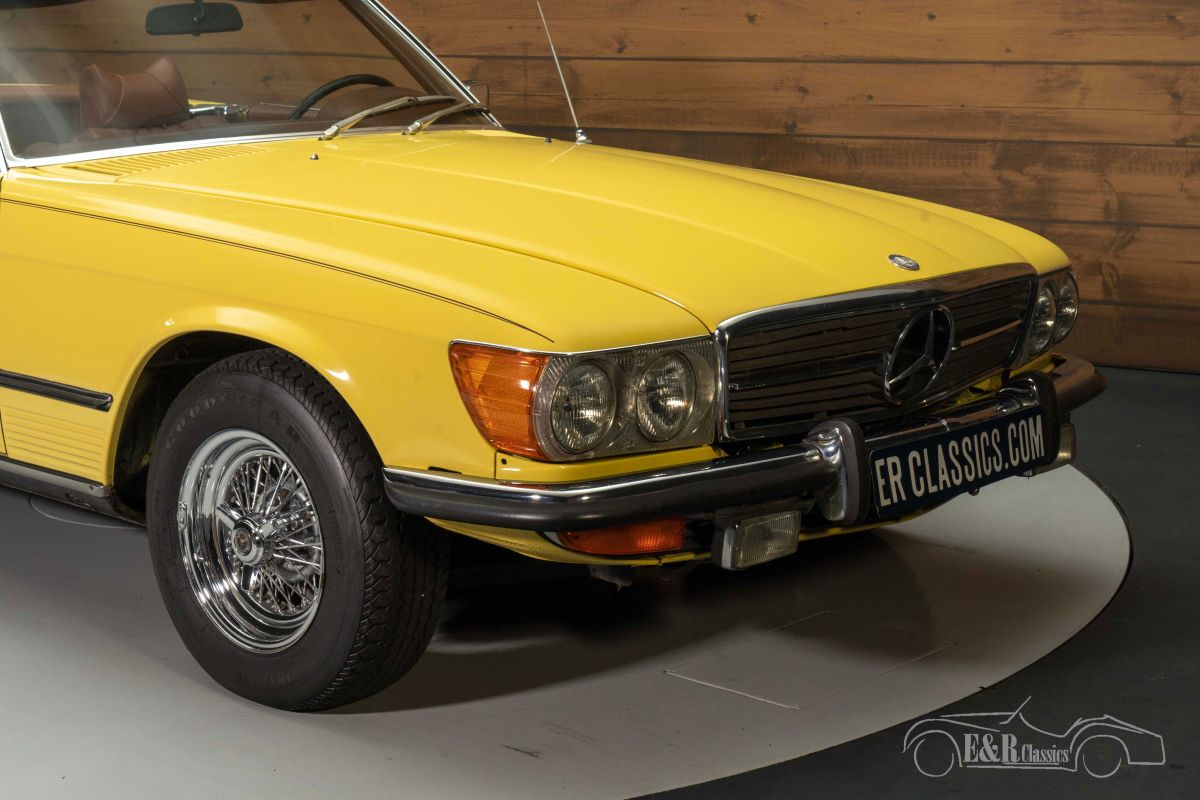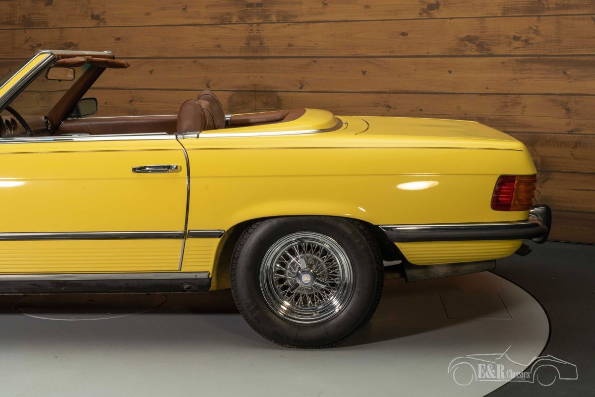 Mercedes Benz 450 SL | Revised engine | V8 | Good condition | 1973 Highlights: - Revised engine - Chrome wire wheels - Hard top and soft top present - 4500cc V8 - Automatic gearbox Mercedes-Benz 450 SL with revised engine for sale Sun, sea and sand… that's the first thing that comes to mind when you see this colourful Mercedes-Benz 450 SL. With this in mind, the first owner put the Mercedes-Benz together at the dealer in sunny California in 1973. The classic that we offer for sale here is powered by a 4500cc V8 with automatic gearbox that provides a wonderfully comfortable driving experience. Technically, the Mercedes-Benz 450 SL is in very good condition. For example, the engine was recently overhauled for a value of 4800 Euros. Mercedes-Benz 450 SL with wire wheels for sale When you see this 1973 Mercedes-Benz 450 SL, you automatically get a smile on your face. The yellow paint looks great on the classic and contrasts nicely with the dark brown interior. What makes it an eye-catcher are the chrome wire wheels. These are wheels that you do not often encounter on a Mercedes-Benz, but they look really beautiful under this classic. The Mercedes-Benz 450 SL is also equipped with a dark brown soft top and a hard top in the same colour as the body. Can you already see yourself touring in this convertible? Want to buy a Mercedes-Benz 450 SL? Are you looking for a 1973 Mercedes-Benz 450 SL? Leave your details via the contact form on this page or call us directly on +31 416 751 393. Our salespeople will be happy to answer all your questions or even make a personal shop video for you. We can help with transport. Within Europe you do not need to pay any import duties. Trading in, buying and consignment possible. In some countries we can help with financing. Ask our sales staff.