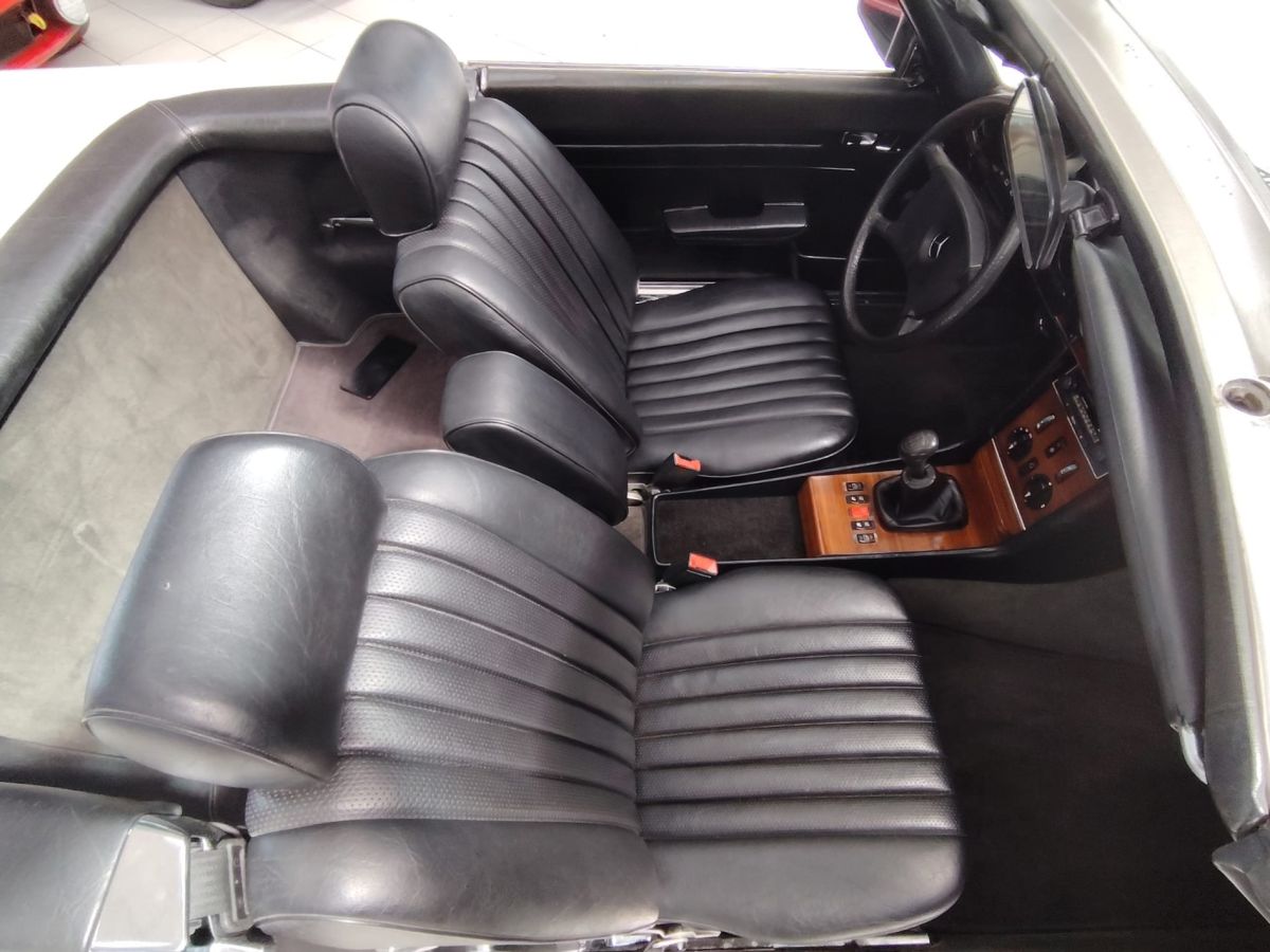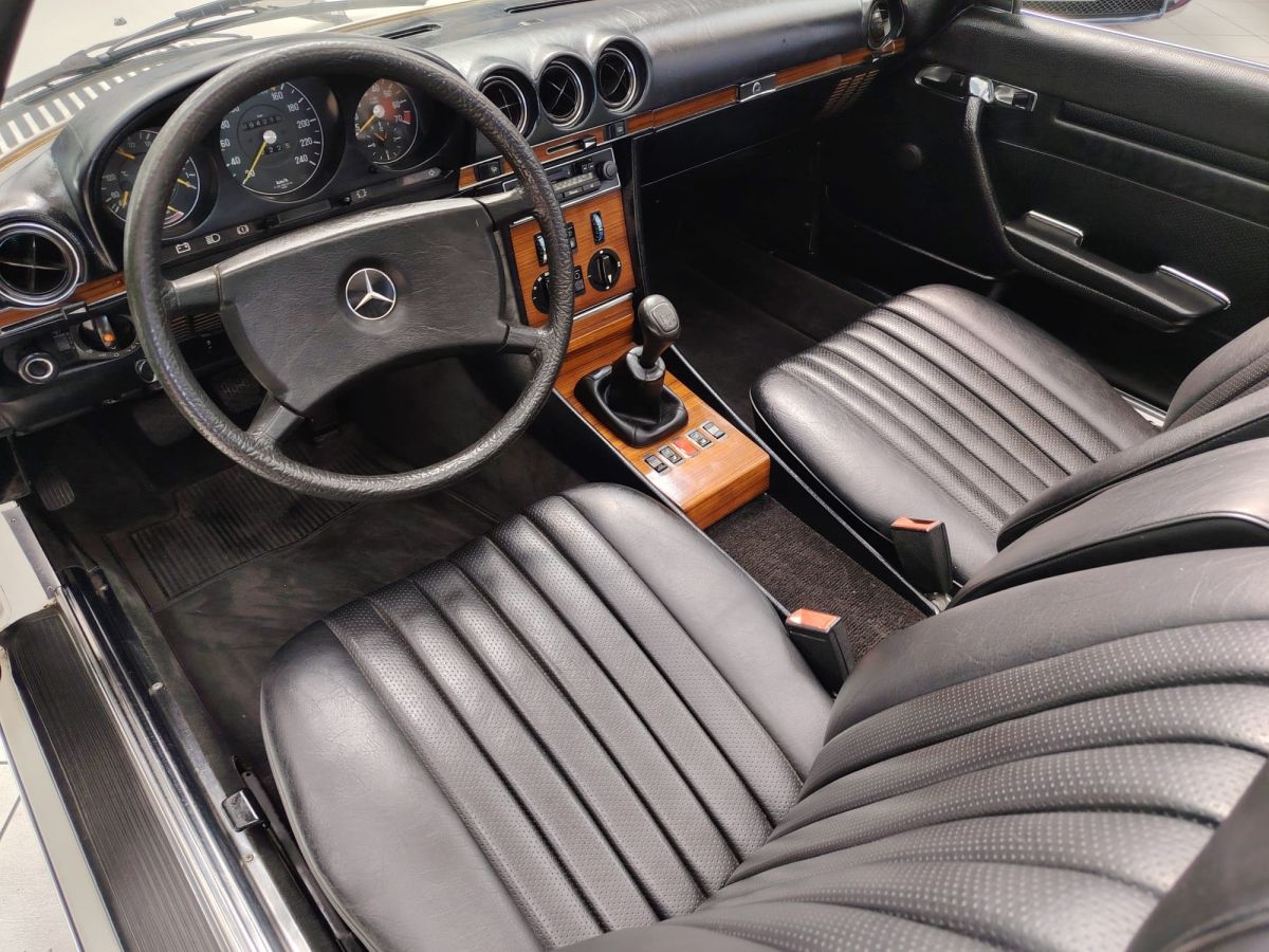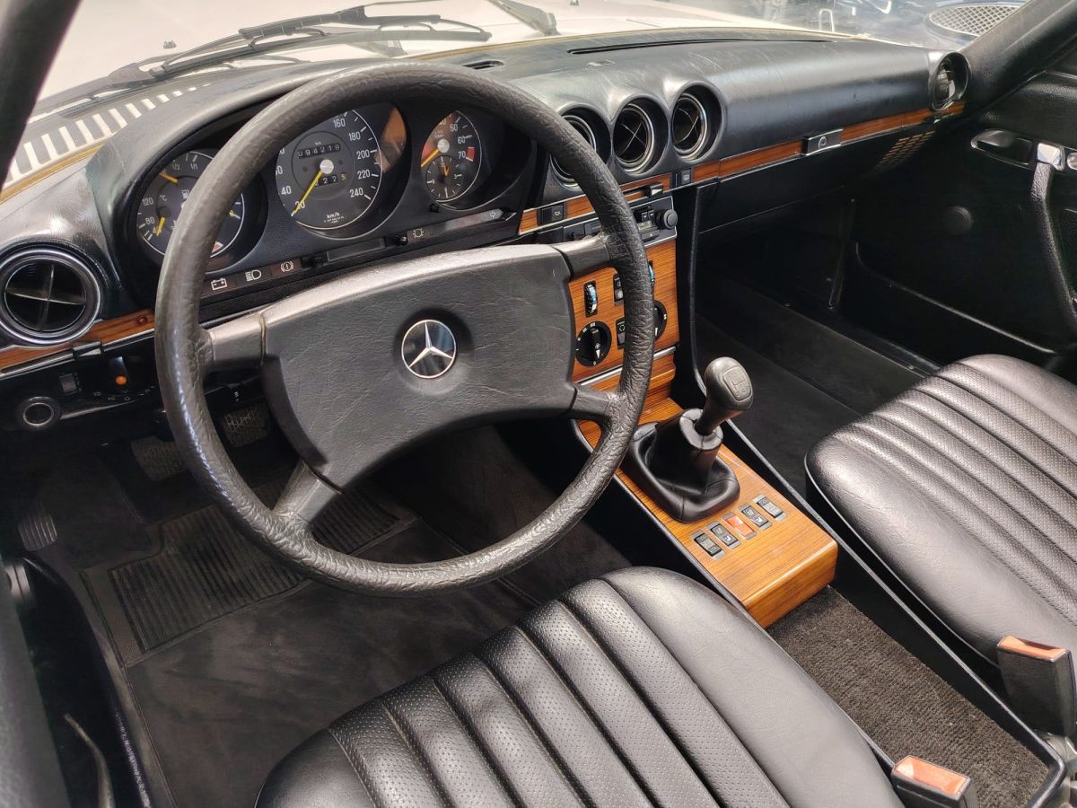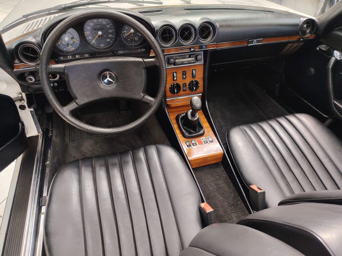 Rispetto ad altre versioni della gamma R107, la 280 SL con cambio manuale a 5 marce rappresenta una configurazione particolarmente apprezzata e relativamente rara, in quanto la maggior parte degli esemplari veniva ordinata con trasmissione automatica.
