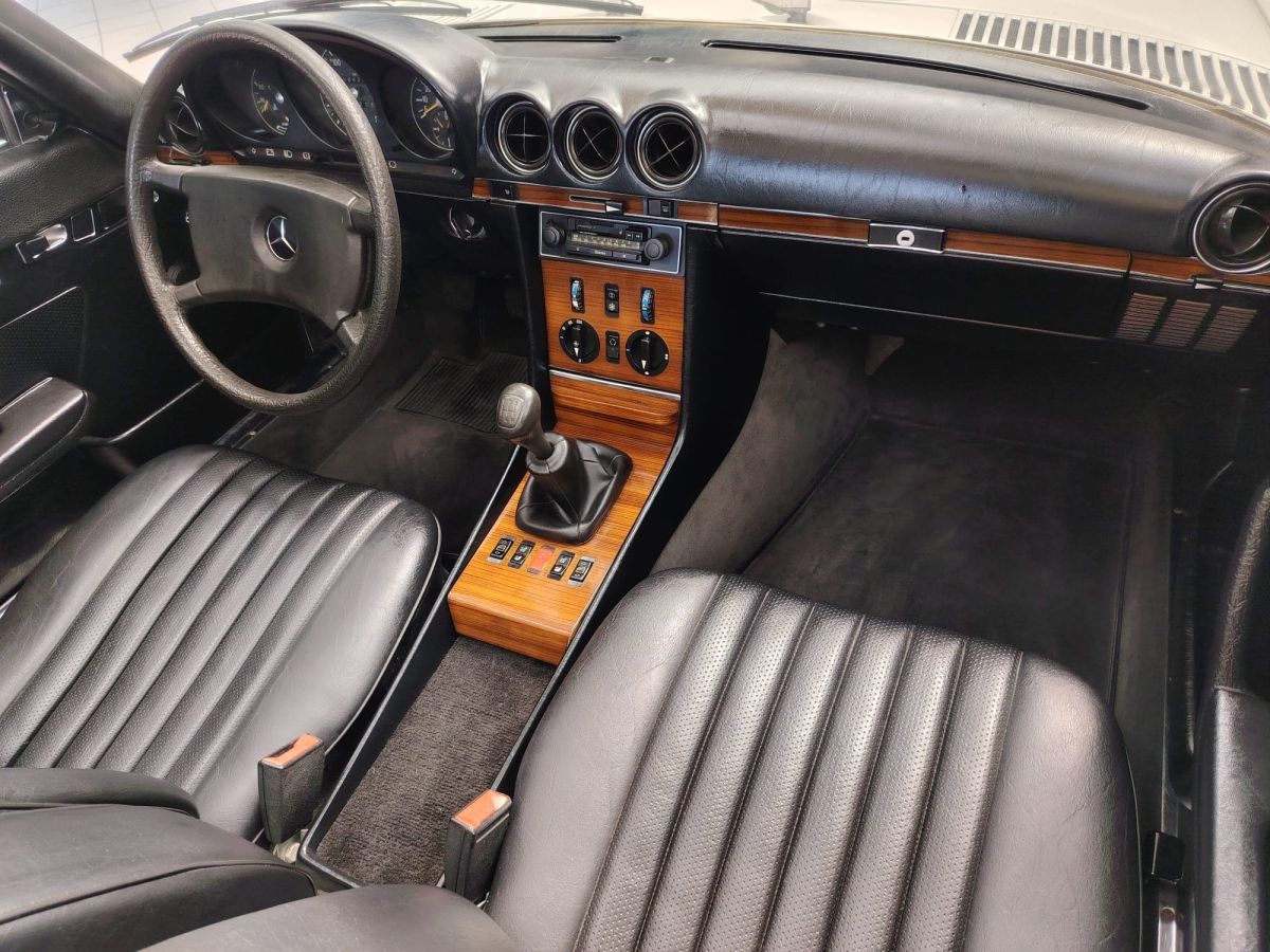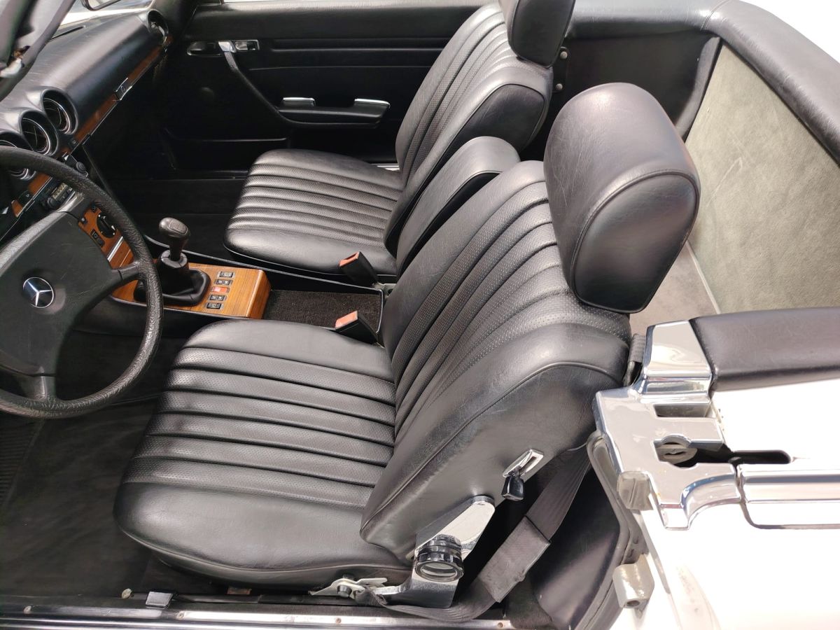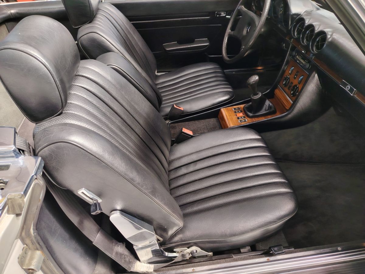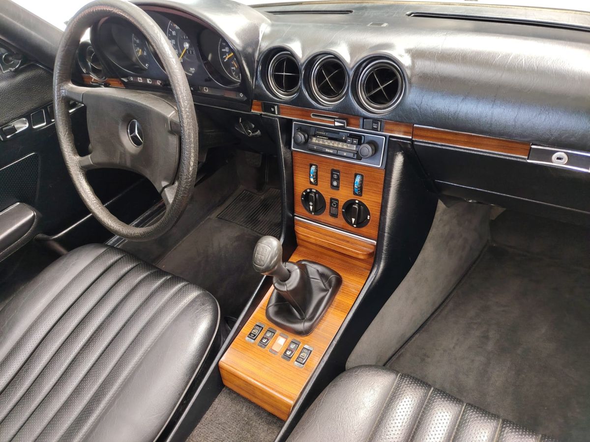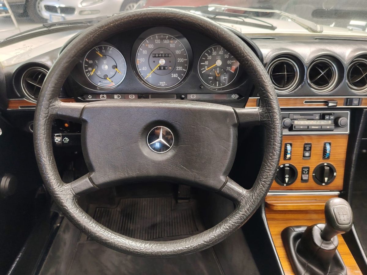 Rispetto ad altre versioni della gamma R107, la 280 SL con cambio manuale a 5 marce rappresenta una configurazione particolarmente apprezzata e relativamente rara, in quanto la maggior parte degli esemplari veniva ordinata con trasmissione automatica.