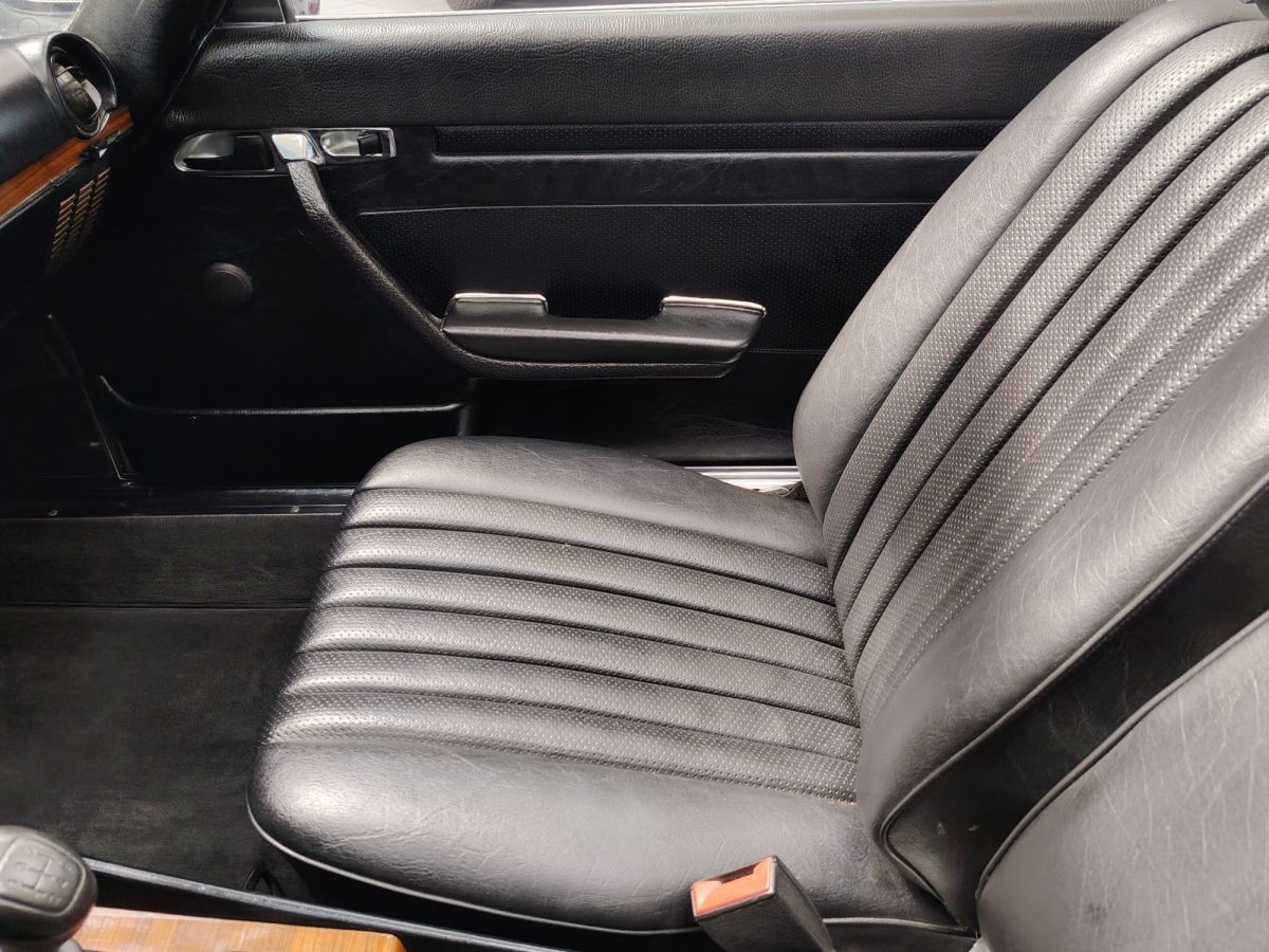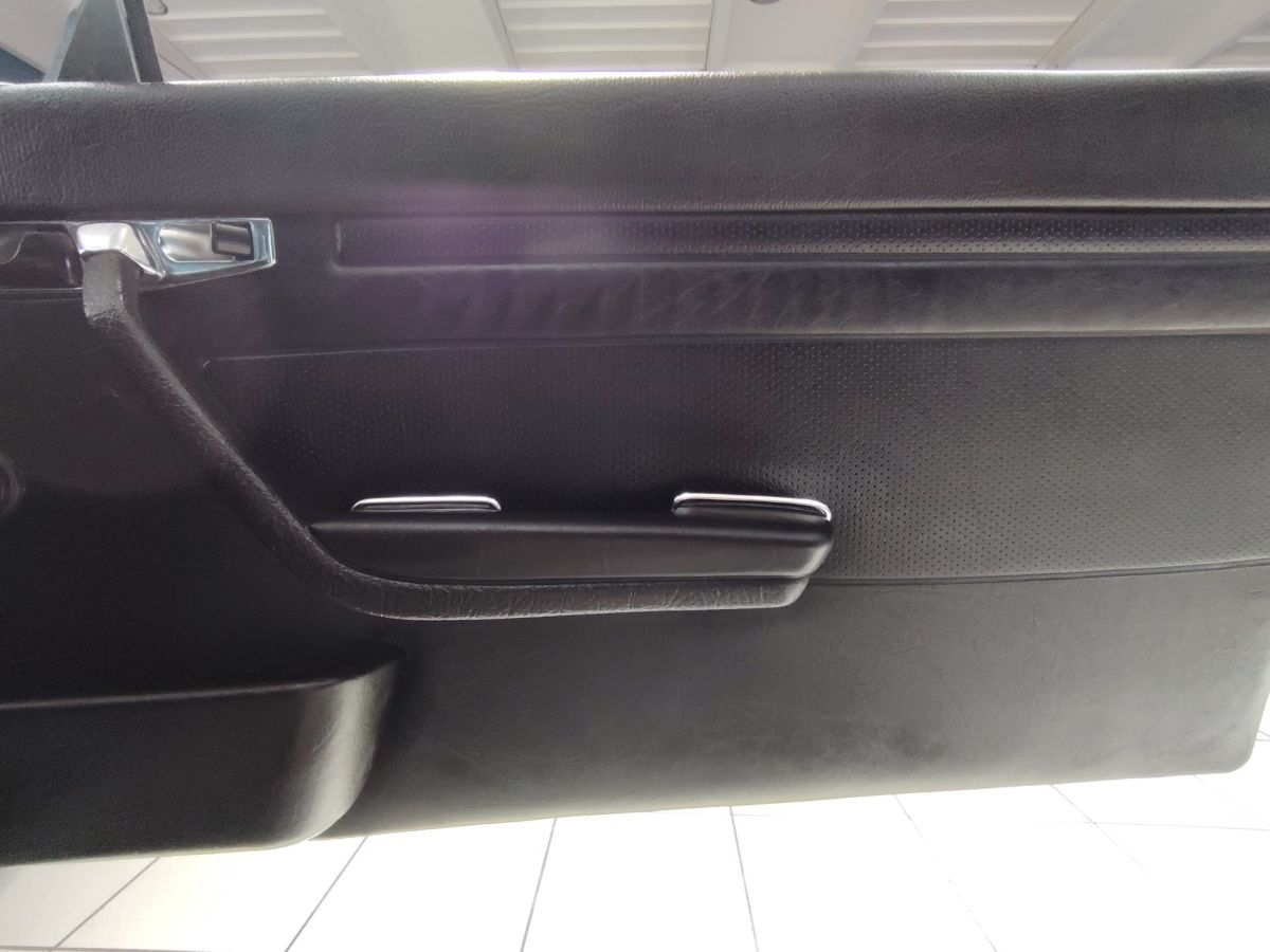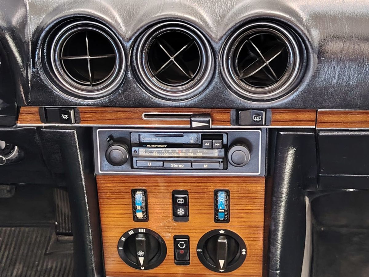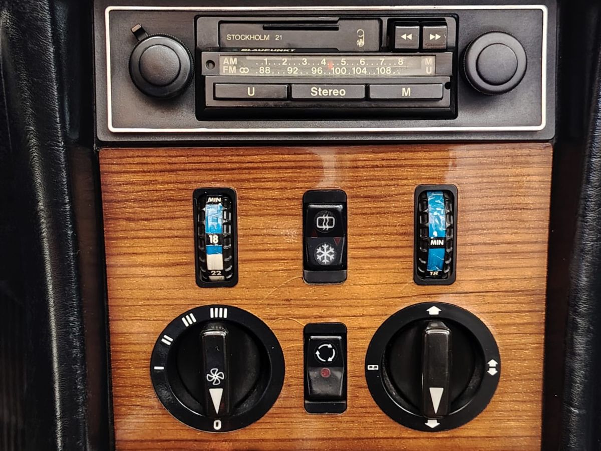 Tra gli accessori spicca la presenza dell’aria condizionata originale, una dotazione non comune per l’epoca, oltre all’autoradio Blaupunkt Stockholm, perfettamente in linea con la configurazione storica del veicolo.