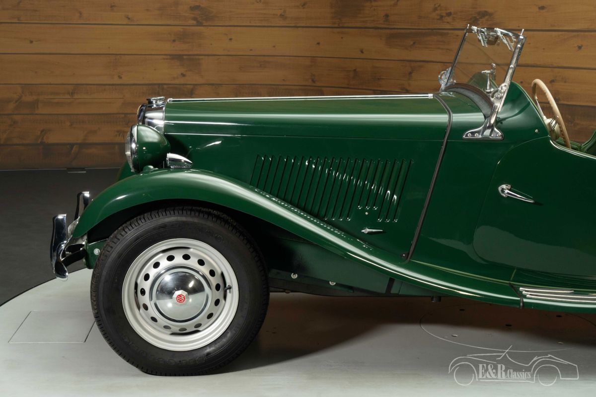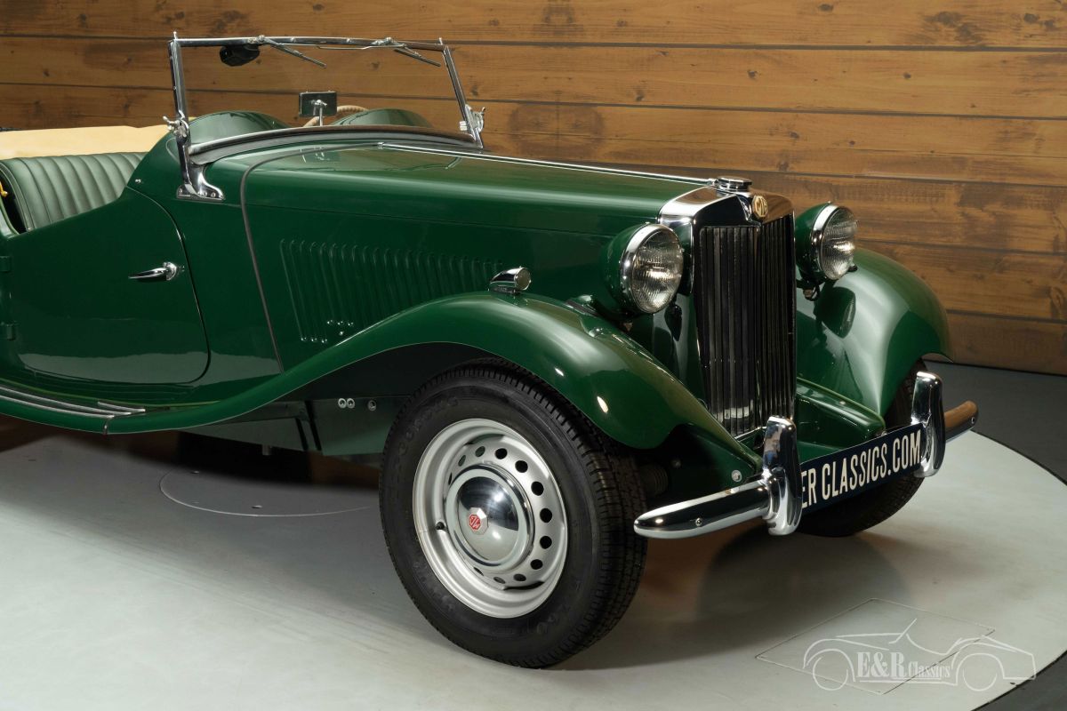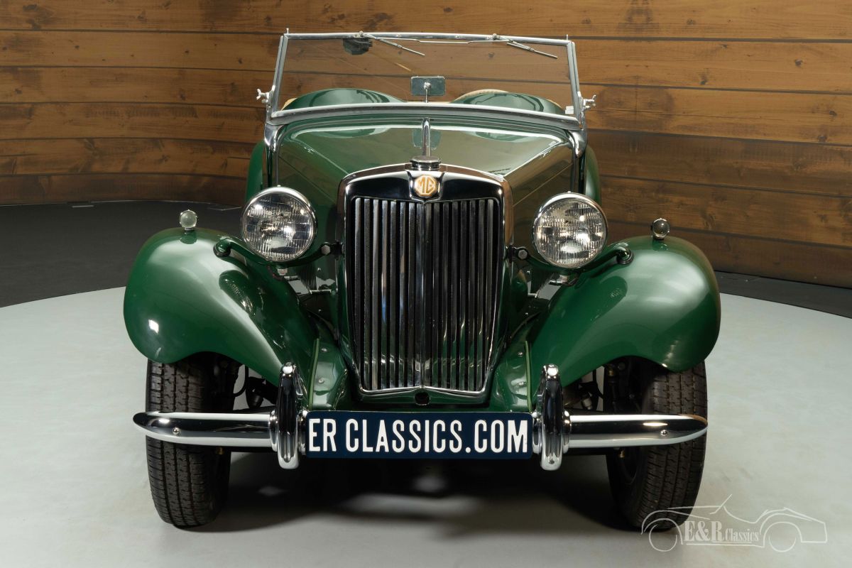 MG TD | Extensively restored | Very good condition | 1950 Highlights: - Only driven 100 km after the restoration - 1250cc 4-cylinder engine - Green interior - Tan soft top Extensively restored MG TD from 1950 for sale The MG TD from 1950 is a perfect combination of classic elegance and technical finesse. Equipped with the 1250cc 4-cylinder engine, this roadster offers a great driving experience in combination with the manual gearbox. Thanks to a recent, extensive restoration, this MG TD has been brought into very good technical and optical condition. After the restoration, it has only been driven 100 kilometers. MG TD in British Racing Green for sale The exterior of this MG TD is finished in the iconic British Racing Green, a colour that fits perfectly with the sporty yet elegant appearance of the car. The green is beautifully accentuated by the tan soft top with matching side windows, which give the whole a refined look. The interior is equally impressive, with a stylish green interior that offers both comfort and authenticity. The wooden details on the dashboard enhance the classic character of the car. Every ride in this MG TD is a unique journey through the history of the British automotive industry. Buy MG TD? Are you looking for a 1950 MG TD? Then leave your details via the contact form on this page or call +31 416 751 393 directly. Our sales staff will be happy to answer all your questions or even make a personal shop video for you.