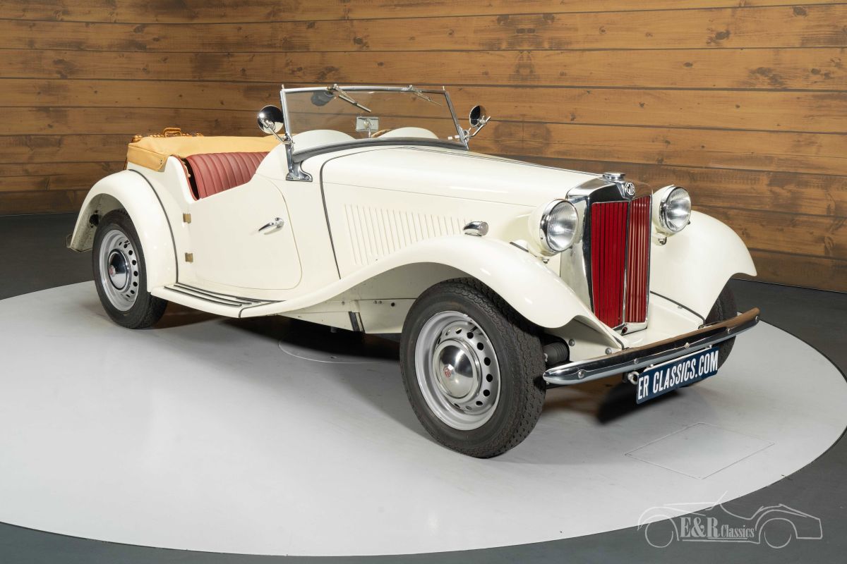 MG TD | Extensively Restored | Very Good Condition | 1953 Highlights: - Extensively restored - Photo report and restoration invoices available - 1250cc 4-cylinder engine with 4-speed manual transmission - Bordeaux red interior Extensively restored MG TD for sale The 1953 MG TD is a true classic with British charm and sporting roots. This example features the 1250cc 4-cylinder engine combined with a 4-speed manual transmission, delivering an authentic driving experience that only an MG can offer. The MG TD combined the sporty chassis of the TC with a more comfortable suspension and wider bodywork, bridging the gap between classic and modern. This car has been extensively restored, with no expense spared. An extensive photo report and a folder with invoices from the restoration are available. The MG spent many years with the same enthusiast, who treated the car with great care, a fact clearly evident in its current condition. White MG TD with red interior for sale The exterior of this MG TD is also a feast for the eyes. The classic lines are beautifully accentuated by the sleek white paintwork, which combines beautifully with the light brown soft top and matching side windows. The original wheels with MG center caps contribute to the charming, original character. The interior is upholstered in burgundy red leather and is in excellent condition, with beautifully finished seats and a wooden dashboard that exudes craftsmanship. The warm color palette of the interior perfectly complements the exterior and creates a particularly harmonious whole. With the wicker trunk on the back, this MG TD is ready for stylish drives and classic rallies. Buying an MG TD? Are you looking for a 1953 MG TD? Please leave your details via the contact form on this page or call us directly at +31 416 751 393. Our sales team will be happy to answer all your questions or even create a personalized shopping video for you. We can help with transport. Within Europe you do not need to pay any import duties. Trading in, buying and consignment possible. In some countries we can help with financing. Ask our sales staff.