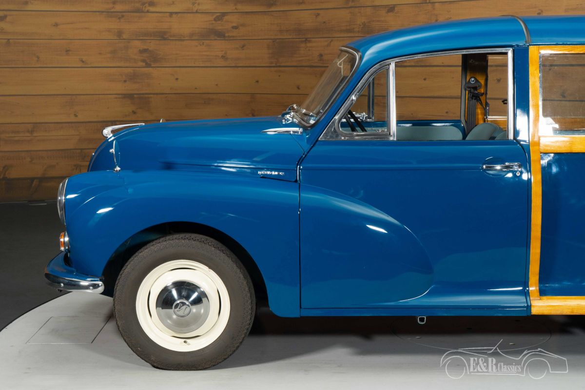 Morris Minor Traveller 1000 | Extensively Restored | Very Good Condition | 1971 Highlights: - Extensively restored - 1,000 km driven since restoration - 1.1-liter 4-cylinder engine with 4-speed manual transmission - Light blue interior Extensively restored Morris Minor Traveller 1000 for sale The 1971 Morris Minor Traveller 1000 is one of the most recognizable British classics ever built. The Traveller version, with its characteristic wooden rear frame, combines the charming design of the Morris Minor with the practicality of a compact estate car. This example is powered by the reliable 1.1-liter four-cylinder engine, coupled with a 4-speed manual transmission, providing an authentic and enjoyable driving experience. Since its introduction, the Morris Minor has been known for its robust engineering, comfortable handling, and timeless appearance. This car has also been extensively restored and has only driven approximately 1,000 kilometers since its restoration, leaving it in exceptionally neat and well-maintained condition. Blue Morris Minor Traveller 1000 for sale The exterior of this Morris Minor Traveller is a real eye-catcher. This classic car features stylish blue paintwork that contrasts beautifully with the characteristic wood trim at the rear, a detail that has made the Traveller beloved worldwide. The combination of the deep blue and the warm wood gives the car an elegant and authentic appearance. The classic steel wheels with hubcaps enhance the original character of this British classic. The interior complements this perfectly with a light blue leatherette upholstery that harmonizes beautifully with the exterior. The minimalist dashboard, large central speedometer, and slim steering wheel give the cabin a typical 1960s feel, while the practical rear cargo space underscores the Traveller's versatility. Buying a Morris Minor Traveller 1000? Are you looking for a 1971 Morris Minor Traveller 1000? Please leave your details via the contact form on this page or call us directly at +31 416 751 393. Our sales team will be happy to answer all your questions or even create a personalized shopping video for you. We can help with transport. Within Europe you do not need to pay any import duties. Trading in, buying and consignment possible. In some countries we can help with financing. Ask our sales staff.