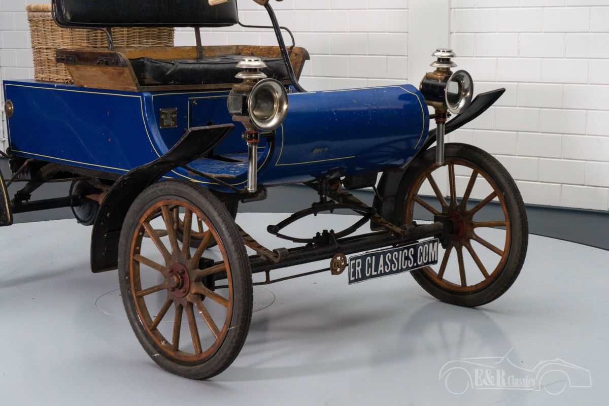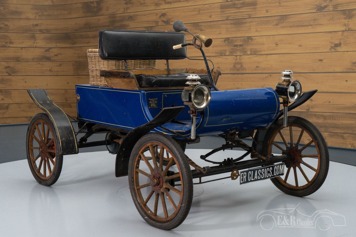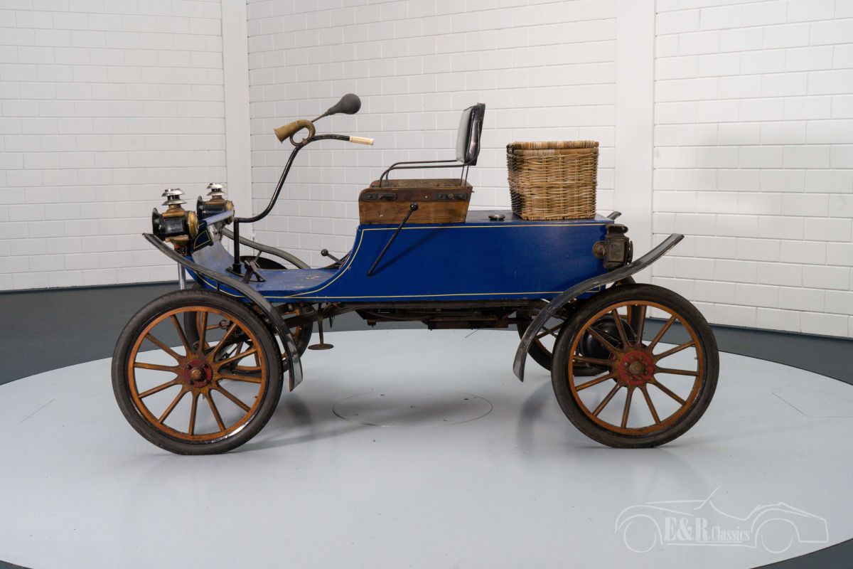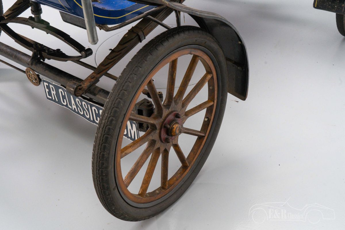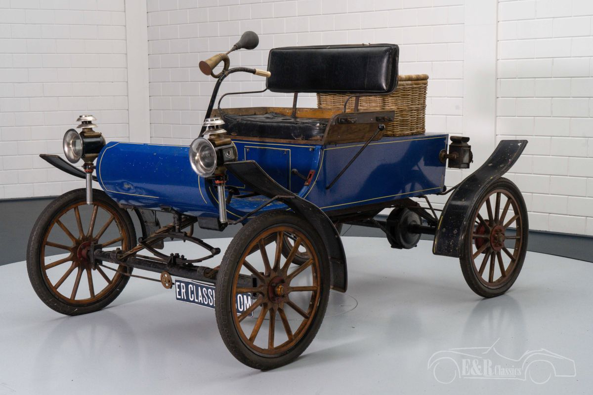 Oldsmobile Curved Dash Replica | Rare | Unique Appearance Highlights: - Replica of the Oldsmobile Curved Dash - First mass-produced car - Single-cylinder Cushman Husky engine - 2-speed semi-automatic transmission - Beautiful patina Rare Oldsmobile Curved Dash Replica for sale We offer for sale this beautiful and very rare Oldsmobile Curved Dash Replica. This classic was built by an American company and is a replica based on the Oldsmobile Curved Dash from 1903. The Oldsmobile was produced in a total of more than 11,000 units between 1901 and 1907. This makes the Curved Dash the very first mass-produced American car. The Replica is powered by a Cushman Husky single-cylinder engine with two-speed semi-automatic transmission. As soon as you take a seat in this unique classic, you will find yourself back in the early 20th century. Oldsmobile Curved Dash Replica for sale at ER Classics The Oldsmobile Curved Dash Replica that we offer for sale here is anything but a standard classic. The car is built on the basis of an all-steel construction and is equipped with lighting with candles, steering rod, two-person bench, wooden spoke wheels and curved dashboard. Over the years, a beautiful patina has developed on the dark blue paintwork that completely matches the classic look of this car. Are you looking for a unique old-timer to visit shows and events? Then this Oldsmobile Curved Dash is the car for you. Want to buy Oldsmobile Curved Dash Replica? Are you looking for an Oldsmobile Curved Dash Replica? Then leave your details via the contact form on this page or call +31 416 751 393 directly. Our sales staff will be happy to answer all your questions or even make a personal shopping video for you. We can help with transport. Within Europe you do not need to pay any import duties. Trading in, buying and consignment possible. In some countries we can help with financing. Ask our sales staff.