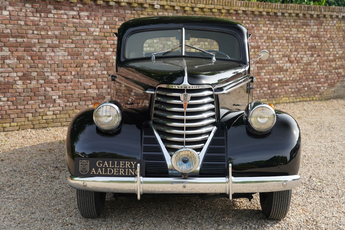 This stunning 1938 Oldsmobile Business Coupé still carries the unmistakable spirit of the 1930s. A time when cars were beginning to move beyond pure utility and become expressions of style and presence.