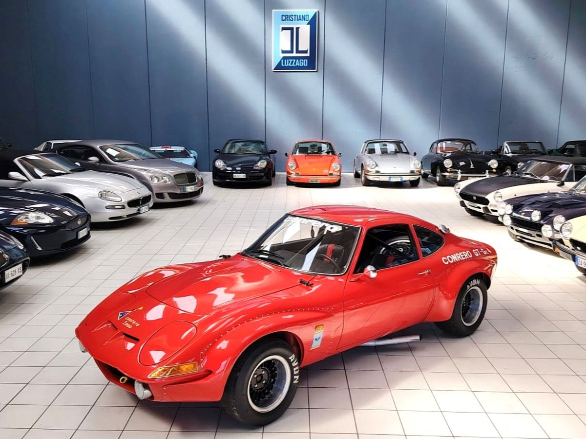 Straordinario esemplare di Opel 1900 GT Gruppo 4 preparata da Virgilio Conrero, figura leggendaria dell’elaborazione sportiva italiana e protagonista assoluto nelle competizioni turismo e GT degli anni ’60 e ’70. Questa vettura rappresenta una delle più affascinanti interpretazioni corsaiole della Opel GT, trasformata secondo le specifiche Gruppo 4 FIA, categoria riservata alle vetture granturismo altamente modificate per uso agonistico.