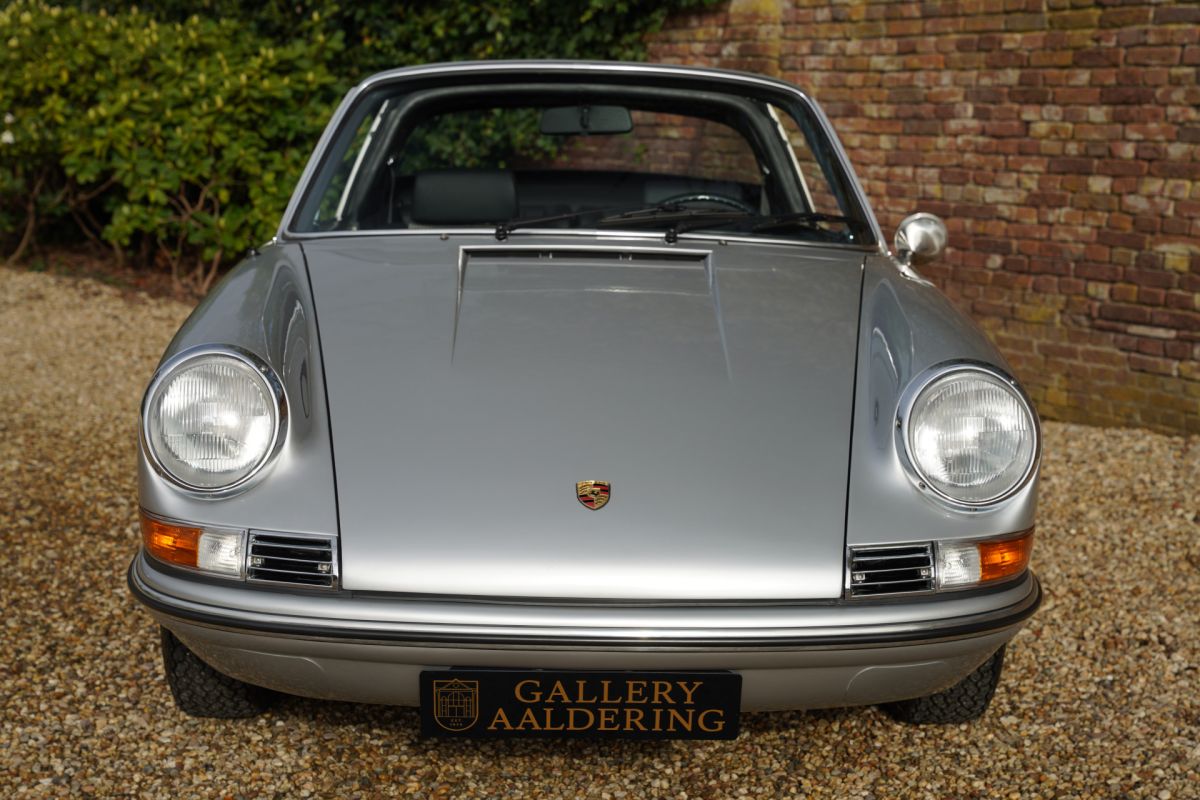 This Porsche has been beautifully restored and overhauled in the Netherlands by a Porsche specialist, complete to factory specifications. This makes this 911 Targa a very beautiful and well-preserved example. The exterior, for instance, is in very good condition. The external paintwork, Silver Grey, is truly beautiful and neat. The rubbers, brightwork, glass, and the beautiful Fuchs wheels all look very attractive and well cared for.