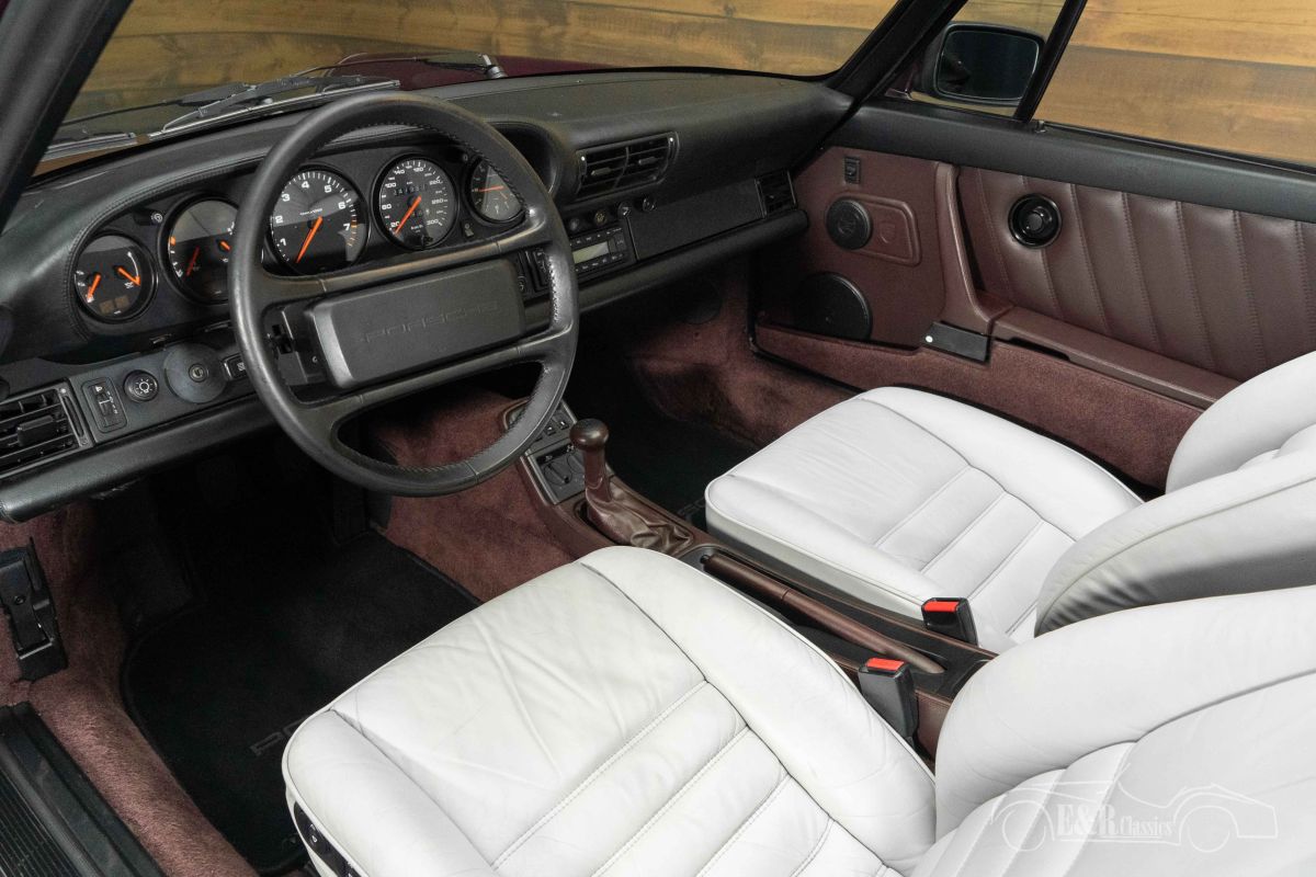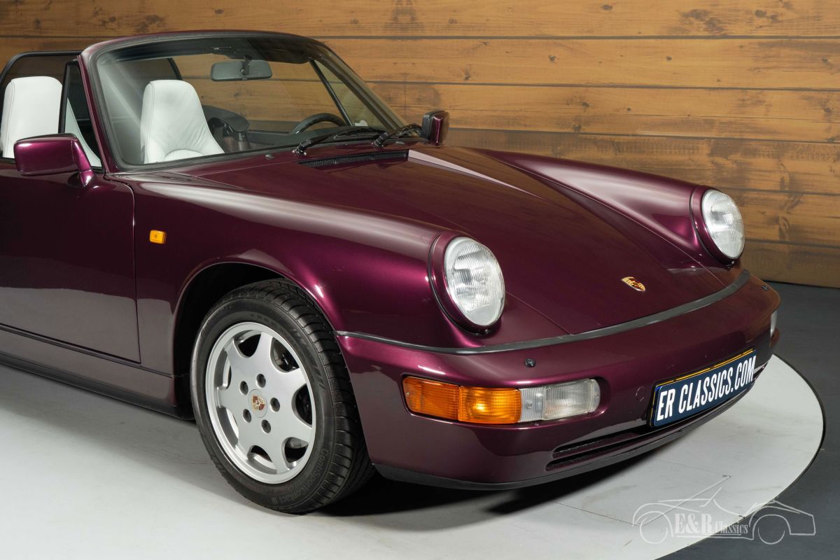 Porsche 911 Carrera 4 Cabriolet | Known History | Revised Engine | 1990 Highlights: - Delivered new in Germany - Original booklets present and completed - 3.6-liter 6-cylinder engine (revised in 2025) - 5-speed manual transmission - Porsche Amethyst metallic paint Porsche 911 Carrera 4 Cabriolet in very good condition for sale This 1990 Porsche 911 Carrera 964 Cabriolet is a beautiful example of the generation that bridged the gap between classic and modern. This example was delivered new in Germany and is equipped with the powerful 3.6-liter air-cooled six-cylinder boxer engine, coupled with a 5-speed manual transmission. The engine was revised in 2025, with an invoice available, contributing to the technical reliability of this iconic sports car. The 964 is known for its improved handling, reliability, and everyday usability, while fully retaining the pure 911 character. The original booklets are present and completed, and the maintenance history is available, making it complete. The car is in very good condition and has clearly been treated with care. Porsche 911 Carrera 4 Cabriolet in Porsche Amethyst Metallic The exterior is particularly stylish thanks to the rare Porsche Amethyst Metallic paintwork, which combines perfectly with the black mohair soft top. The classic Cup wheels emphasize the sporty character and seamlessly complement the timeless lines of the 964. The interior is upholstered in gray leather with purple carpet, a striking and tasteful combination that beautifully complements the body color. This Porsche is also equipped with air conditioning, electrically adjustable and heated seats, and a modern Continental DAB radio, combining comfort and originality. A convertible that impresses both visually and technically, and is ready to be enjoyed. Want to buy a Porsche 911 Carrera 964 Cabriolet? Are you looking for a 1990 Porsche 911 Carrera 964 Cabriolet? Then leave your details via the contact form on this page or call us directly at +31 416 751 393. Our sales team will be happy to answer all your questions or even create a personalized shopping video for you. We can help with transport. Within Europe you do not need to pay any import duties. Trading in, buying and consignment possible. In some countries we can help with financing. Ask our sales staff.