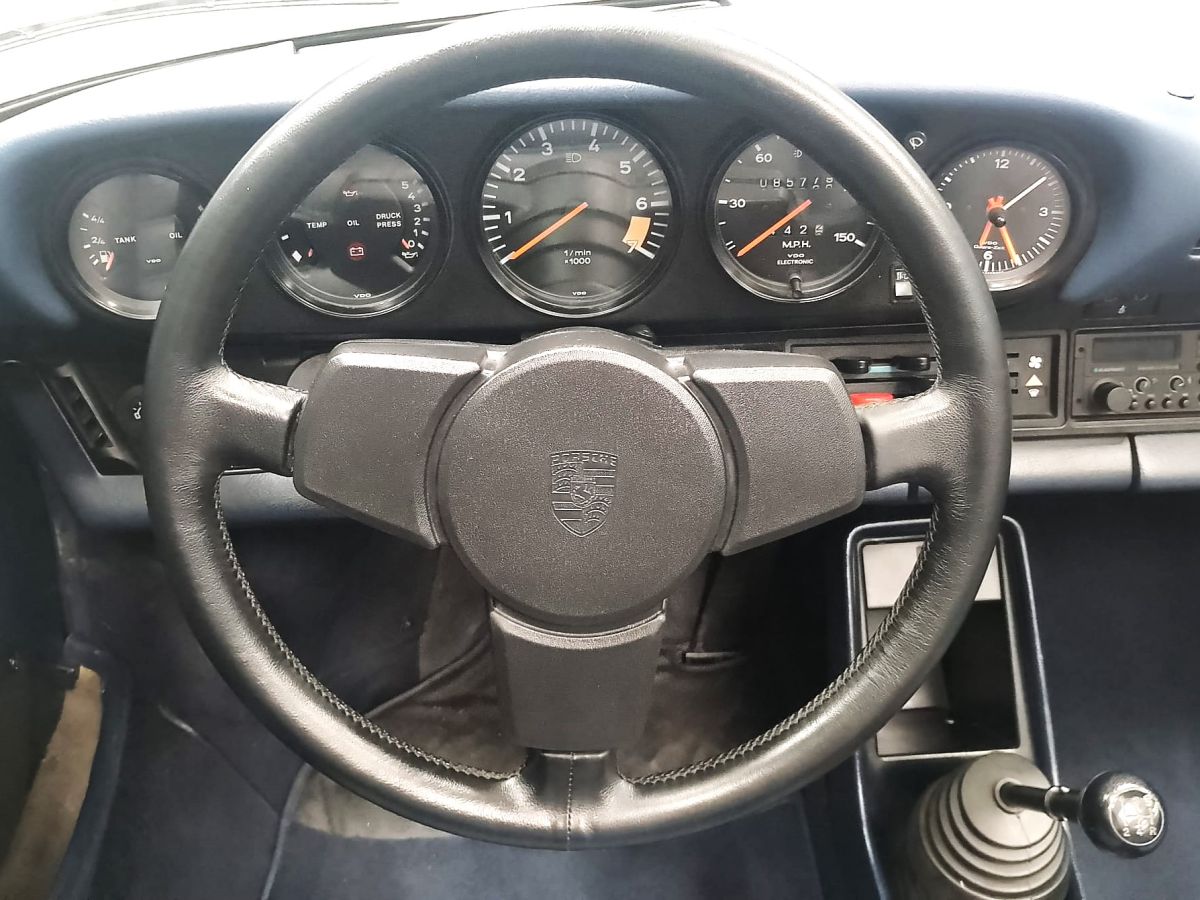 Il raro e ricercatissimo abbinamento cromatico bianco/blu, unito al perfetto stato di conservazione, rende questo esemplare estremamente desiderabile tra i collezionisti e gli appassionati Porsche.