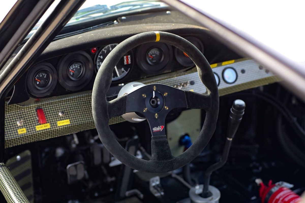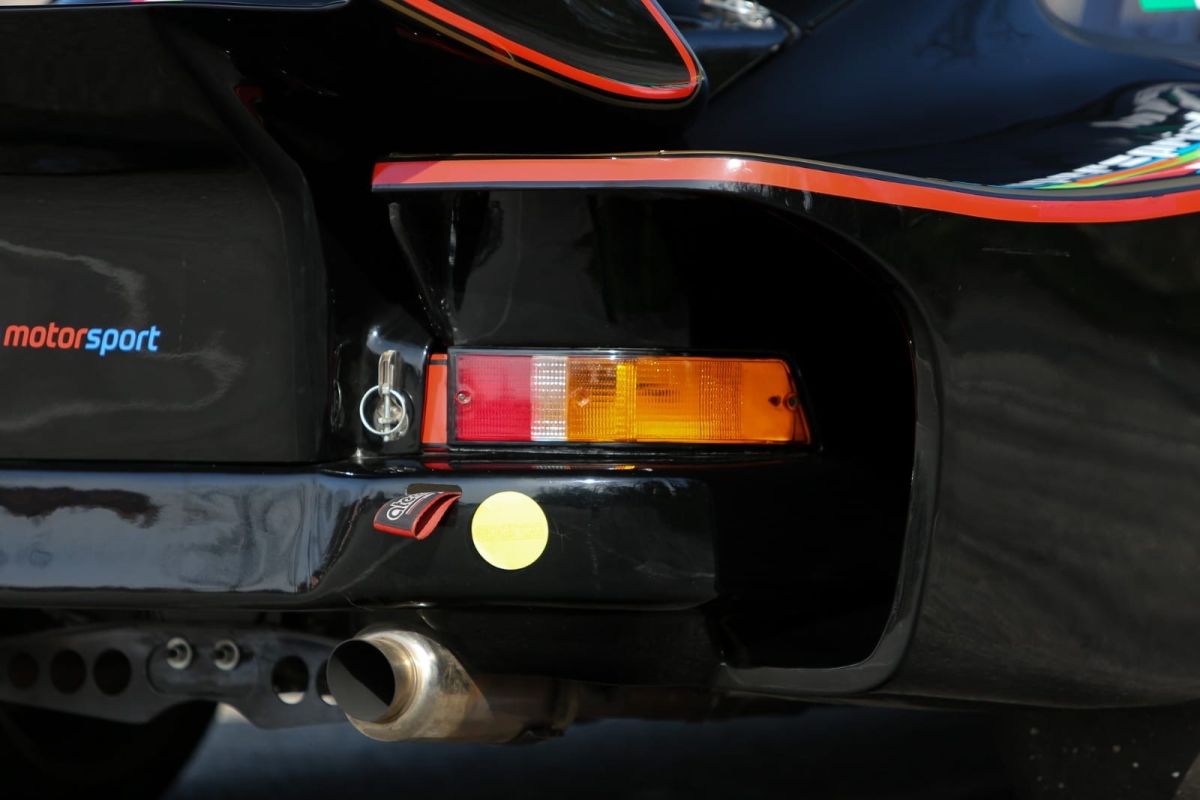 •         Costruita su un telaio Porsche 911 E, questa replica della 935 presenta una carrozzeria larga fedele all'originale, elementi aerodinamici da competizione e una verniciatura nera con una suggestiva livrea multicolore da corsa.