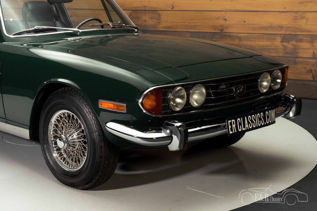 Triumph Stag | Restored | Overhauled engine | Hard top | 1971 Highlights: - Restored - Overhauled engine - Maintenance history known - Hard top available - 3.0 liter V8 engine Restored Triumph Stag for sale We offer for sale this beautiful Triumph Stag from 1971. This Stag comes from the collection of a well-known customer of E&R Classics who traded the car in for another classic car. The Triumph has been restored in the past and the engine was overhauled a few years ago. There is an extensive photo report of the overhaul and numerous invoices for the maintenance carried out have been preserved. It is powered by the 3.0 liter V8 engine linked to an automatic gearbox. The Stag is also equipped with power steering and front disc brakes that provide extra driving comfort. Triumph Stag in British Racing Green for sale The Triumph Stag that we offer for sale here is what a British Classic should look like. It is finished in the beautiful colour British Racing Green and sits on a set of chrome wire wheels. The other chrome on the car is in good condition. The interior of the Stag is equipped with black artificial leather and fabric upholstery. The dashboard with wood inlay fits perfectly with a classic from the 70s and the wooden sports steering wheel completes the overall picture. In addition to a black soft top, this Stag is also equipped with a hard top in the same colour as the body. Want to buy a 1971 Triumph Stag? Are you looking for a 1971 Triumph Stag? Please leave your details via the contact form on this page or call +31 416 751 393 directly. Our sales staff will be happy to answer all your questions or even make a personal shop video for you. We can help with transport. Within Europe you do not need to pay any import duties. Trading in, buying and consignment possible. In some countries we can help with financing. Ask our sales staff.
