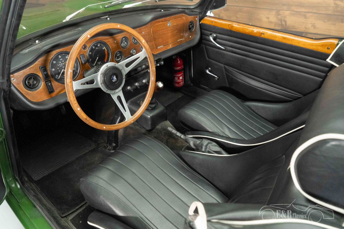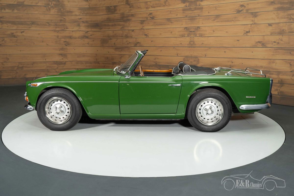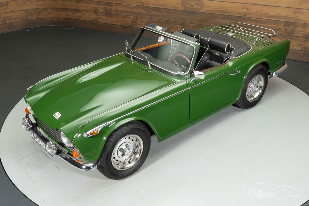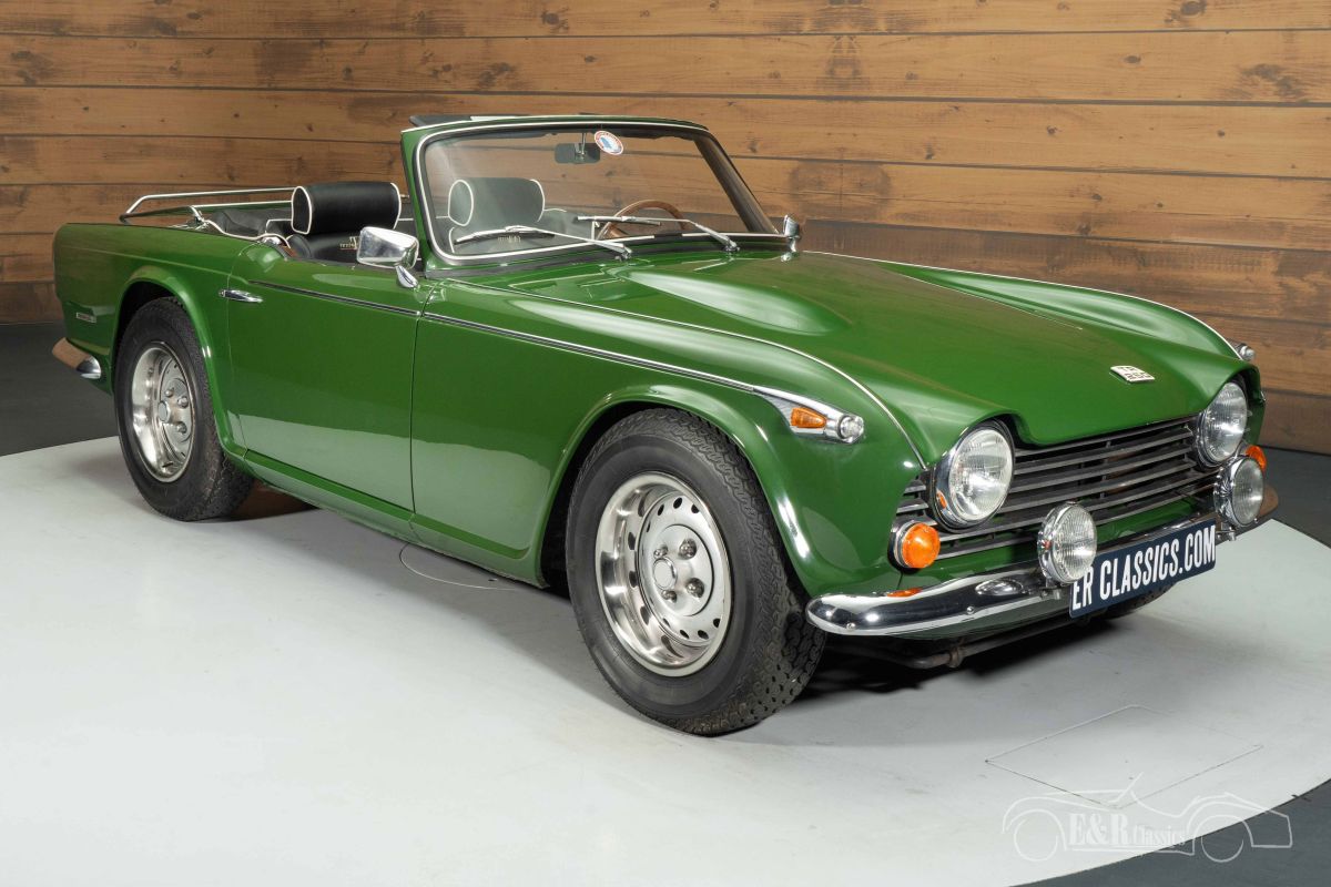 Triumph TR250 | Good Condition | 1967 Highlights: - 2.5-litre 6-cylinder engine - 4-speed manual gearbox - Black soft top - Good condition Triumph TR250 in good condition for sale The 1967 Triumph TR250 is a rare British roadster that was produced for only one year, making it a true collector’s item. Under the bonnet lies the powerful 2.5-litre 6-cylinder engine paired with a 4-speed manual gearbox, delivering the authentic driving experience that made the TR series beloved worldwide. The TR250 combines the classic charm of the TR4 with the technical refinement of the TR6 and is known for its smooth performance and distinctive engine sound. Green Triumph TR250 for sale This Triumph is finished in green paint with light signs of use, perfectly complementing the sporty black interior with white piping. The bucket seats, wooden dashboard, and sports steering wheel enhance its unmistakably British character. Details such as the black soft top, additional spotlights, elegant chrome bumpers, and practical luggage rack underline the car’s classic style. A beautiful roadster to enjoy on sunny drives and at classic car events. Buying a Triumph TR250? Are you looking for a 1967 Triumph TR250? Leave your details via the contact form on this page or call +31 416 751 393. Our sales team will gladly answer all your questions or even create a personalised shop video for you. We can help with transport. Within Europe you do not need to pay any import duties. Trading in, buying and consignment possible. In some countries we can help with financing. Ask our sales staff.