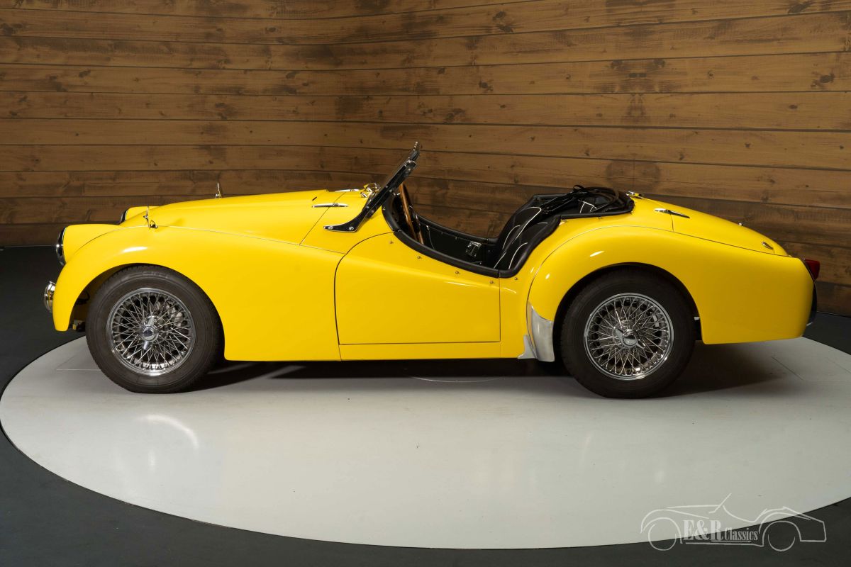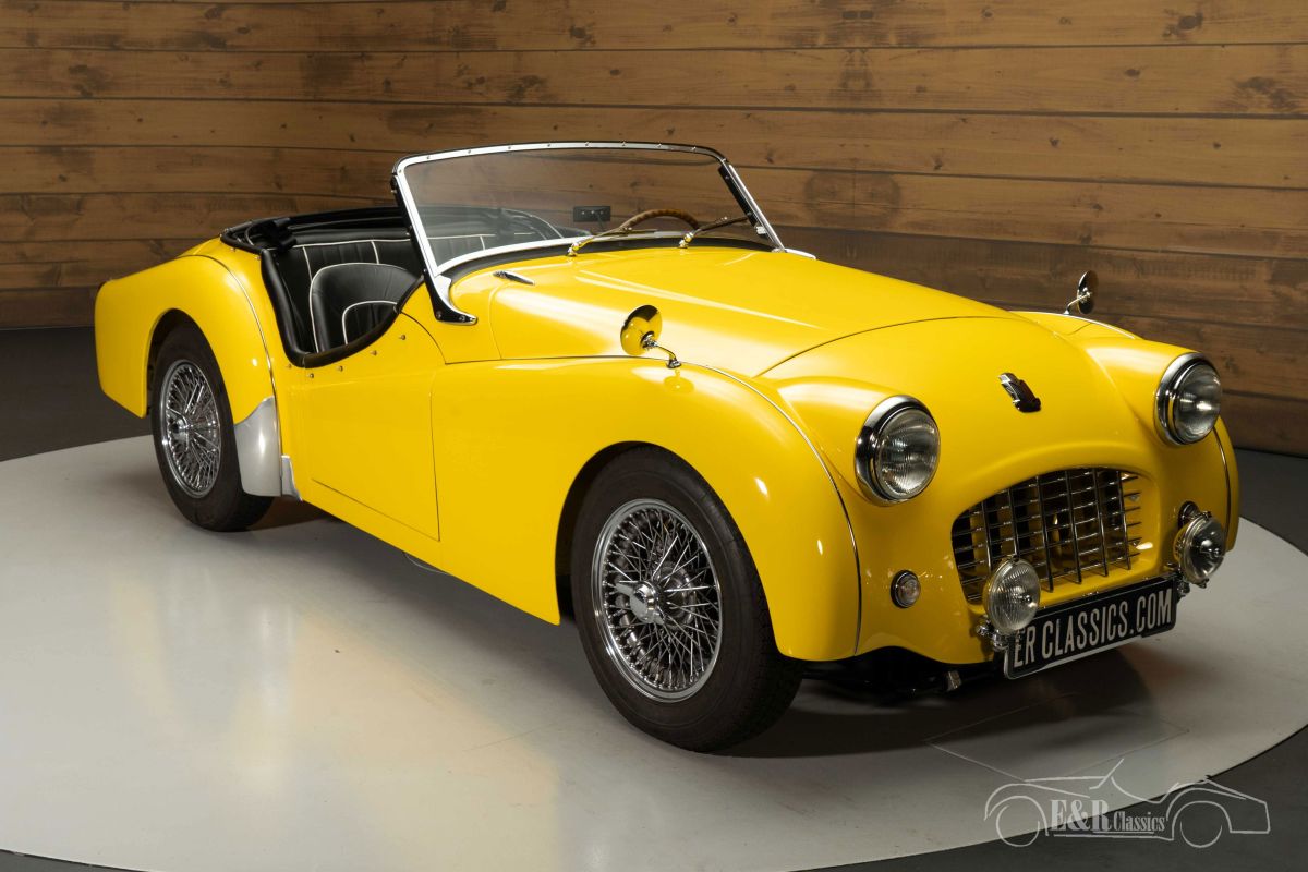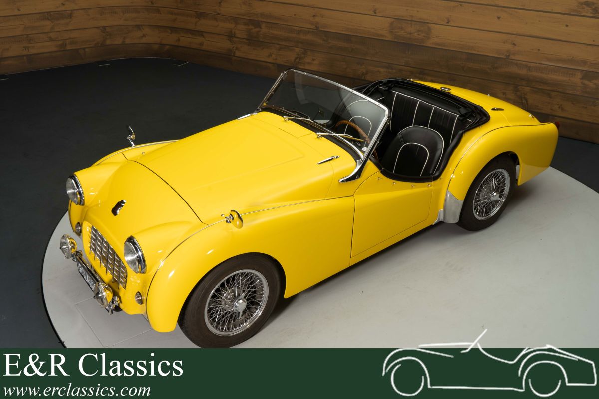 Triumph TR3 | Body-off restored | Top condition | 1960 Highlights: - Body-off restored in 2022 - Only driven 3000 km after restoration - Photo report + invoices available - Rare South African delivery - Various technical upgrades Body-off restored Triumph TR3 for sale We offer for sale this beautiful Triumph TR3 in top condition. This is a rare TR3 that was shipped to South Africa as a kit and completed by Motor Assemblies Durban. The previous owner imported the TR3 from South Africa in 2009 and carried out a body-off restoration together with his father-in-law in the period 2020-2022. The previous owner's father-in-law is a master mechanic and this is reflected in the level of restoration. No expense has been spared to make this a top car and the entire restoration is recorded in a thick folder full of invoices and an extensive photo report. Besides the fact that this Triumph looks great, it is technically in top condition. The gearbox and 1991cc 4-cylinder engine have been overhauled and the car has various technical upgrades such as a reinforced chassis, EBC brake discs and pads and adjustable SPAX shock absorbers. You will not easily come across a better TR3. Yellow Triumph TR3 for sale The Triumph TR3 that we offer for sale here is truly a sight to behold. It has a beautiful yellow paint that makes this classic a real eye-catcher. The chrome is in beautiful condition and combines beautifully with the paint. The soft top has of course been renewed and is black in colour. The interior has black artificial leather upholstery with white piping. Want to buy a Triumph TR3? Are you looking for a Triumph TR3 from 1960? Please leave your details via the contact form on this page or call +31 416 751 393 directly. Our sales staff will be happy to answer all your questions or even make a personal shop video for you. We can help with transport. Within Europe you do not need to pay any import duties. Trading in, buying and consignment possible. In some countries we can help with financing. Ask our sales staff.