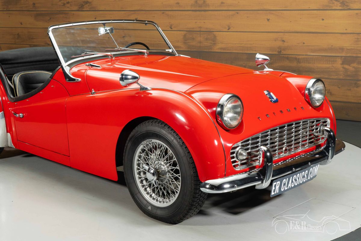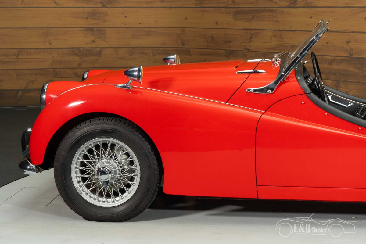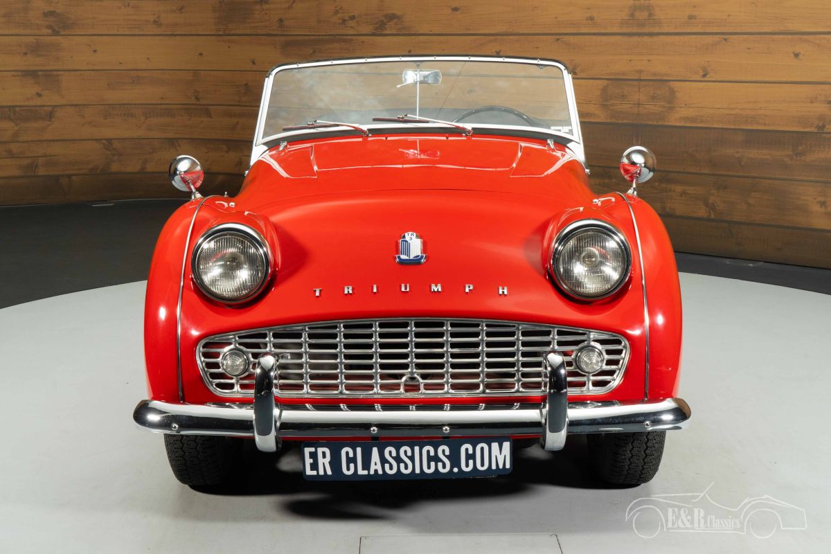 Triumph TR3A | Restored | Overdrive | Hard Top | 63 Years 1 Owner | 1961 Highlights: - Very good condition - One owner since 1963 - Delivered new in the Netherlands - 1991cc 4-cylinder engine - 4-speed manual gearbox with overdrive - Hard top, soft top, and tonneau cover included Restored Triumph TR3A with overdrive for sale The 1961 Triumph TR3A is an iconic British roadster known for its pure driving experience and timeless design. Under the hood lies the characterful 1991cc 4-cylinder engine, coupled with a 4-speed manual gearbox with overdrive, ensuring a sporty yet comfortable driving experience. This example is extra special thanks to its history: delivered new in the Netherlands and with no less than one owner since 1963. The car was restored in the past and is in very good condition today, making it an attractive classic for both enthusiasts and collectors. Red Triumph TR3A with hardtop for sale The appearance of this TR3A is a feast for the eyes, finished in stylish red paintwork that contrasts beautifully with the black soft top and matching hardtop. The painted wire wheels and the chrome rear luggage rack reinforce the car's classic character. The interior is finished with black upholstery with white piping, creating an elegant and sporty look. Additionally, this Triumph is fully equipped with a hardtop, soft top, and tonneau cover, allowing you to enjoy this open sports car in any situation. Buying a Triumph TR3A? Are you looking for a 1961 Triumph TR3A? Then leave your details via the contact form on this page or call directly at +31 416 751 393. Our sales representatives will be happy to answer all your questions or even create a personal shop video for you. We can help with transport. Within Europe you do not need to pay any import duties. Trading in, buying and consignment possible. In some countries we can help with financing. Ask our sales staff.