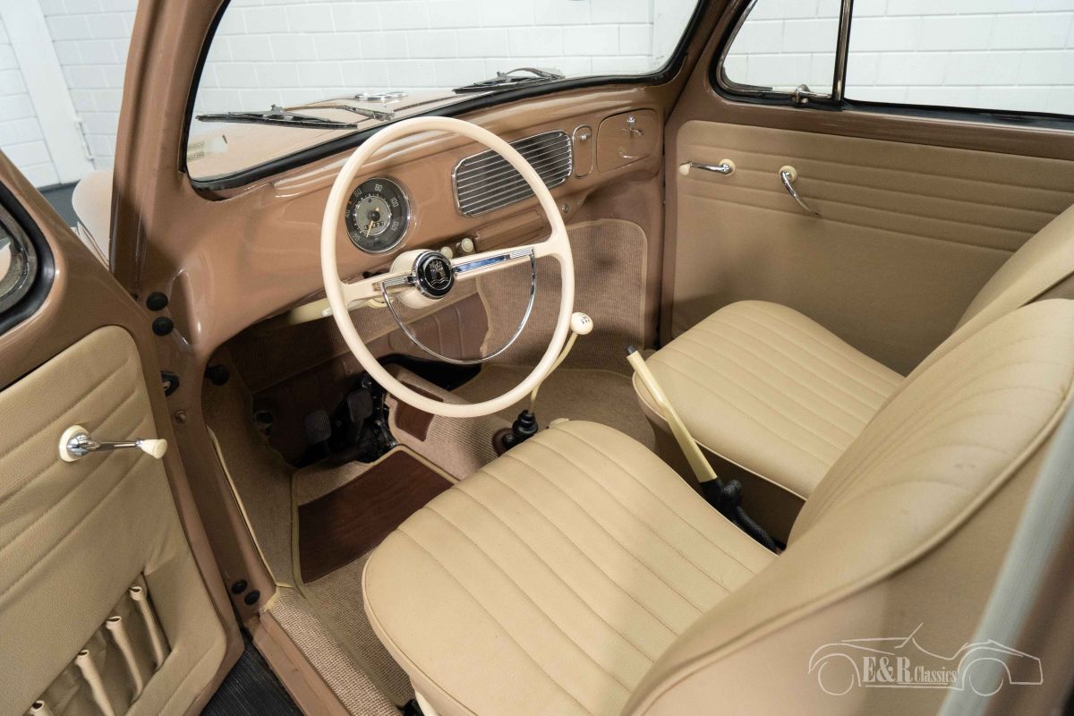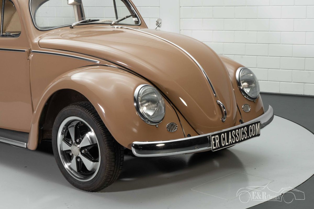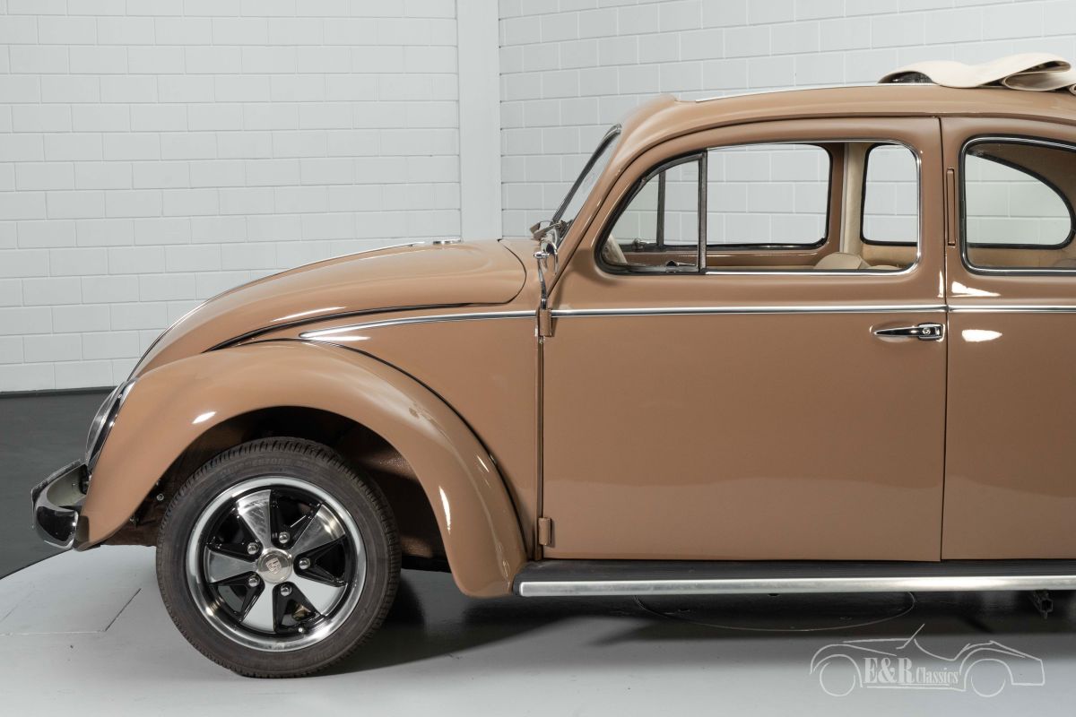 Volkswagen Beetle Oval Ragtop | Nice driver's car | 1957 Highlights: - Original Ragtop - Nice driver's car - 1500cc 4-cylinder engine - Front disc brakes - Fuchs rims Original Volkswagen Beetle Oval Ragtop for sale We offer for sale this nice Volkswagen Beetle Oval Ragtop from 1957. This is an original Ragtop that has been restored by a hobbyist in the past. It is a fun driver's car that provides a great driving experience with its 1500cc 4-cylinder engine and characteristic Beetle sound. The Beetle is also equipped with disc brakes that provide extra driving comfort. Volkswagen Beetle Oval Ragtop with Fuchs rims for sale The Beetle Oval Ragtop that we offer for sale here has a very tasteful color combination. The brown paint combines very well with the chrome and has some cracks here and there and small signs of wear all around. It stands on a set of Fuchs rims that give the Beetle a distinctive character. The tan-colored interior is in a neat condition and provides a special color scheme in combination with the paintwork. Want to buy a Volkswagen Beetle Oval Ragtop? Are you looking for a 1957 Volkswagen Beetle Oval Ragtop? Then leave your details via the contact form on this page or call +31 416 751 393 directly. Our sales staff will be happy to answer all your questions or even make a personal shopping video for you. We can help with transport. Within Europe you do not need to pay any import duties. Trading in, buying and consignment possible. In some countries we can help with financing. Ask our sales staff.