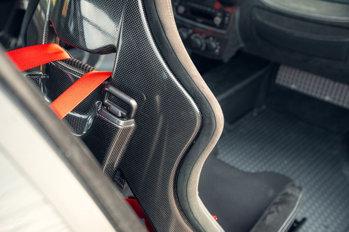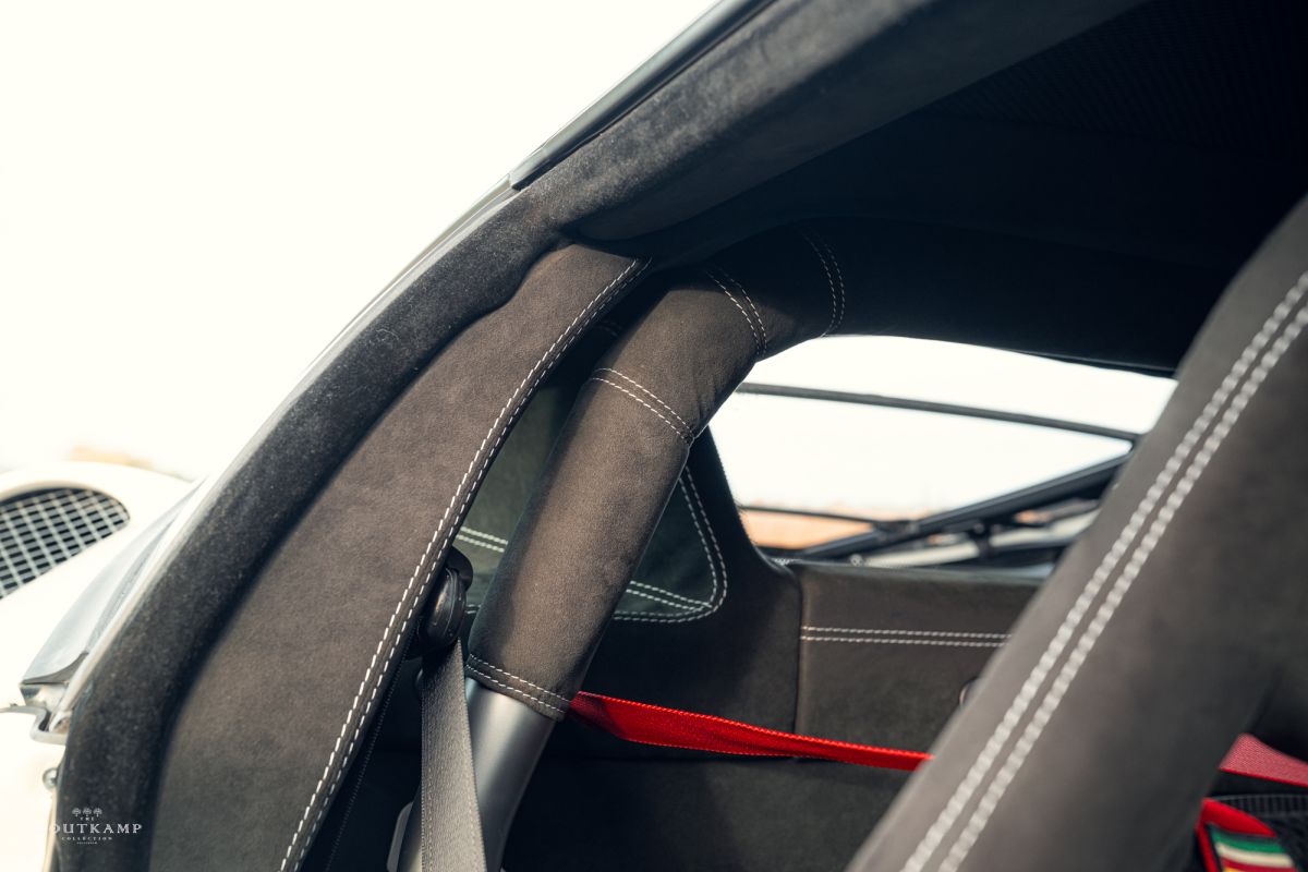 The steering wheel, finished in Alcantara, remains free from any noticeable marks, offering a tactile connection to the car’s racing heritage.