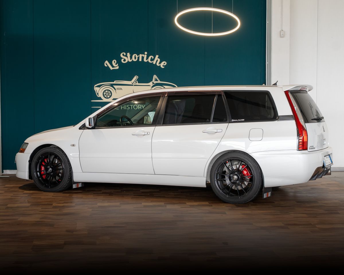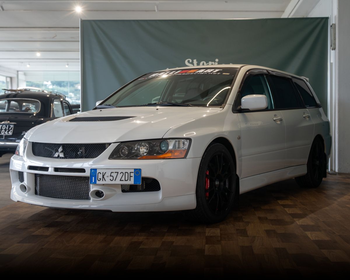 Scopri la Mitsubishi Lancer Evolution 2.0 16v Evo IX GSR 4wd Wagon, un'auto sportiva dal carattere deciso e dal design elegante in Solid White.