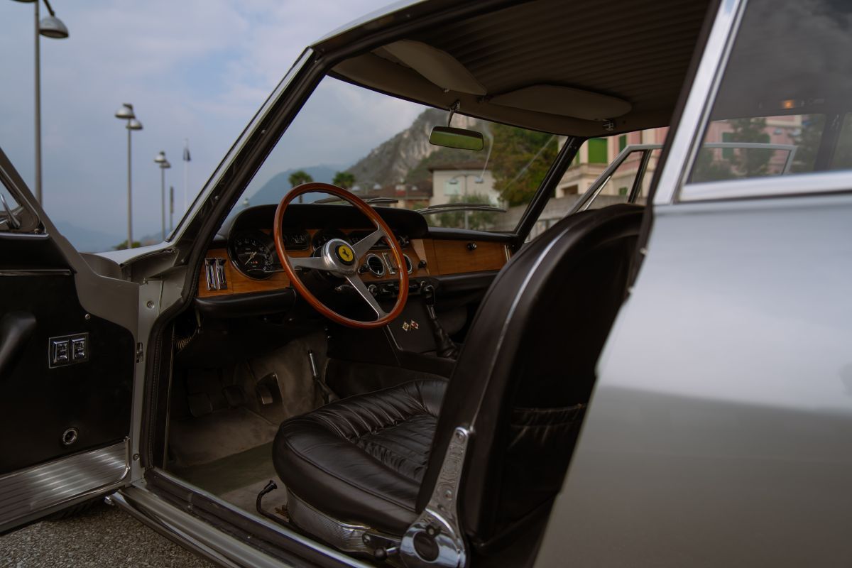 Il colore della carrozzeria è l’elegante grigio argento metallizzato, quello preferito da Enzo Ferrari per questo modello, con interni in pelle nera.